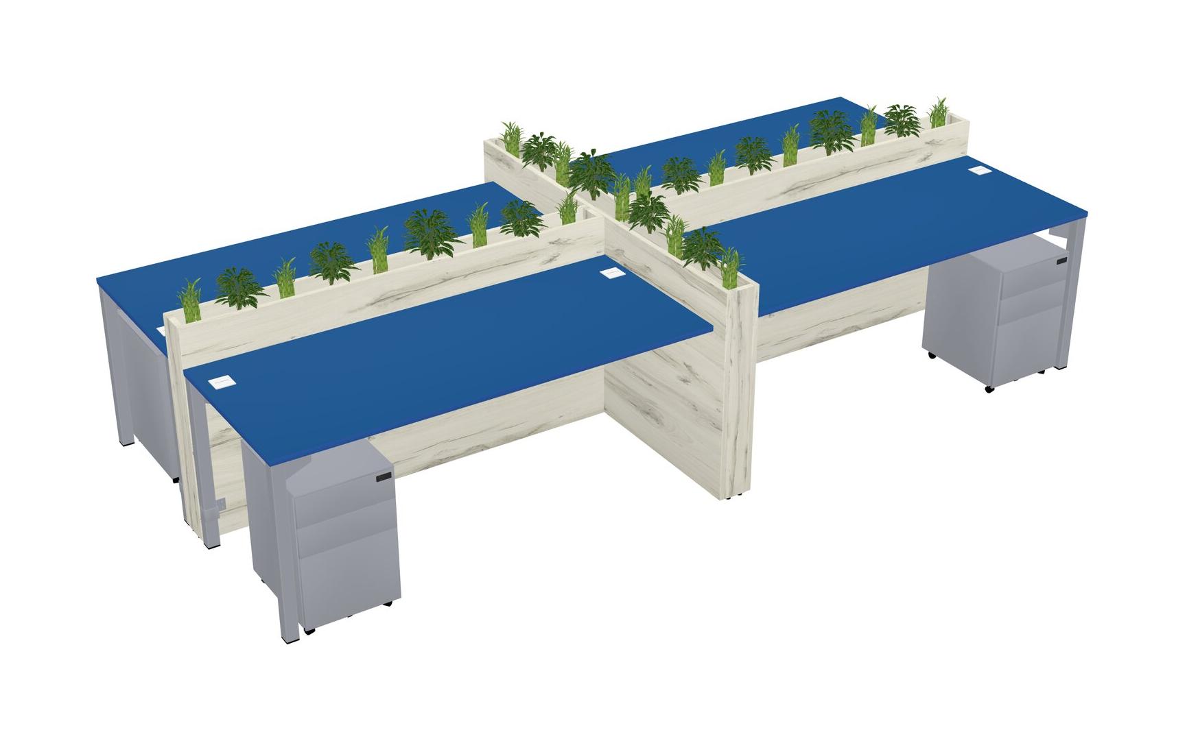 Prism Blue Rectangular Shared Office Desk For 4 Persons Let Nature Help Flourish Your Productivity The Base Comes With An Adjustable Shelf To Provide Space For Pots (Pots & Plants Sold Separately)