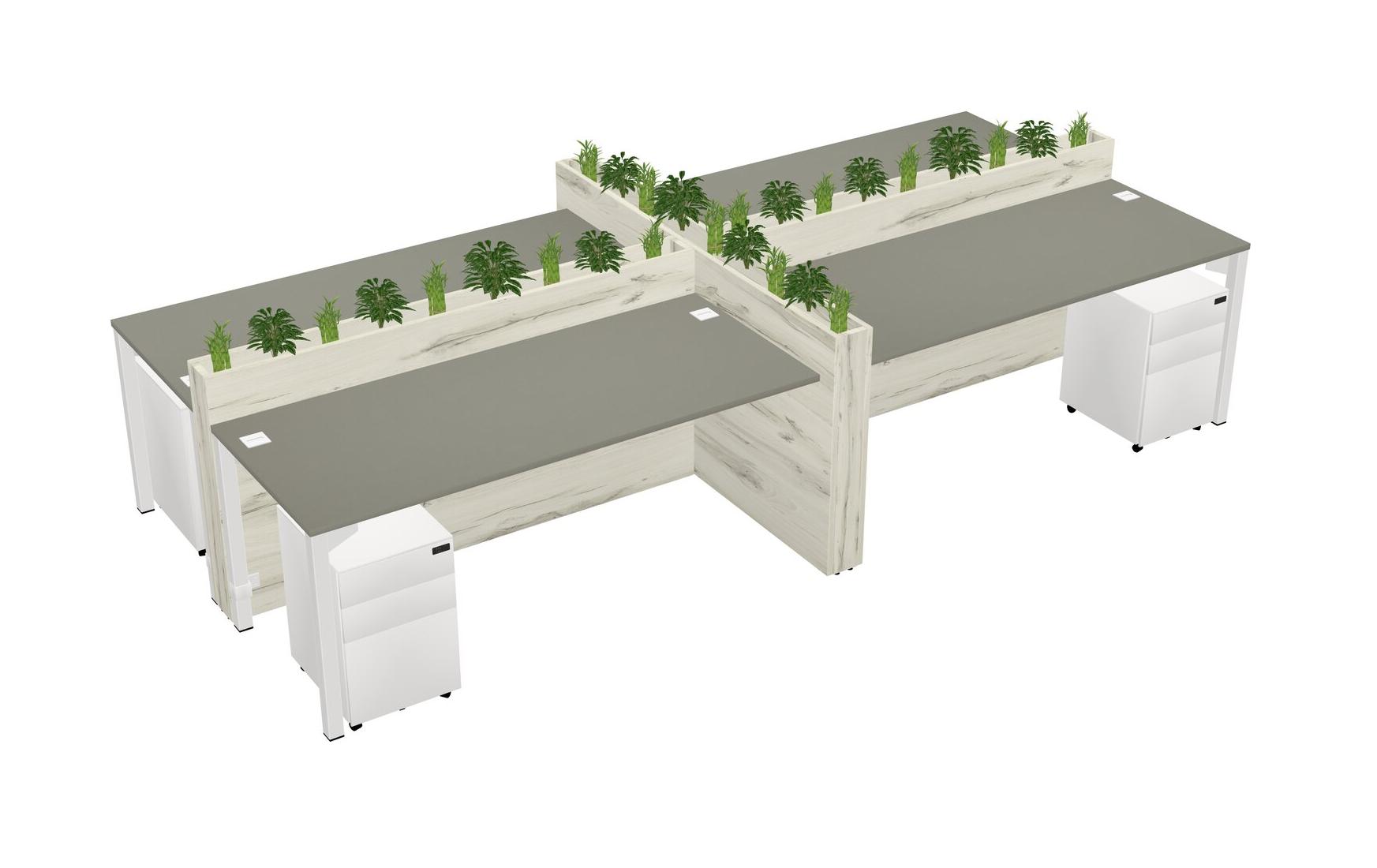 Grey Shadows Rectangular Shared Office Desk For 4 Persons Let Nature Help Flourish Your Productivity The Base Comes With An Adjustable Shelf To Provide Space For Pots (Pots & Plants Sold Separately)