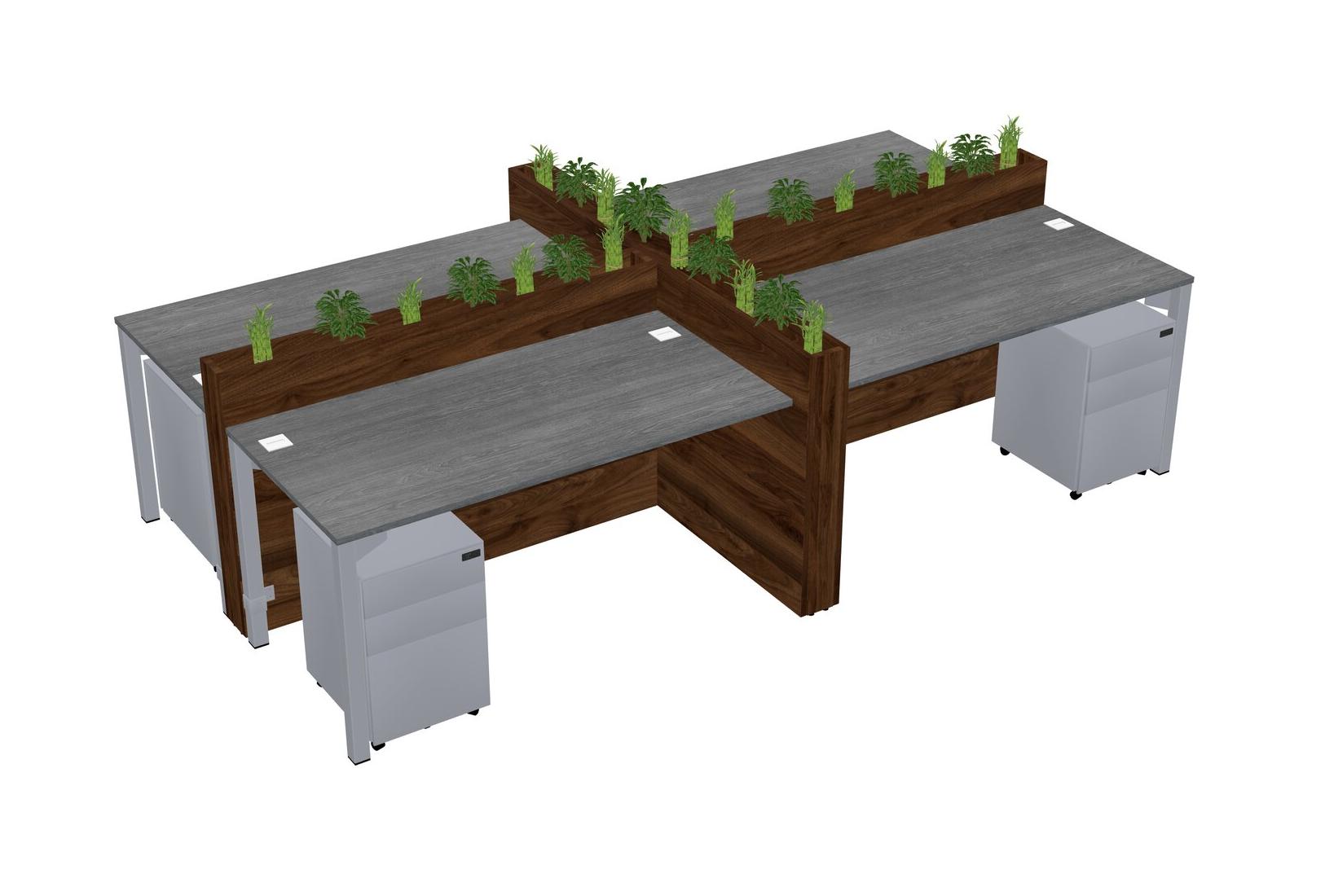 Grey Rectangular Shared Office Desk For 4 Persons Let Nature Help Flourish Your Productivity The Base Comes With An Adjustable Shelf To Provide Space For Pots (Pots & Plants Sold Separately)
