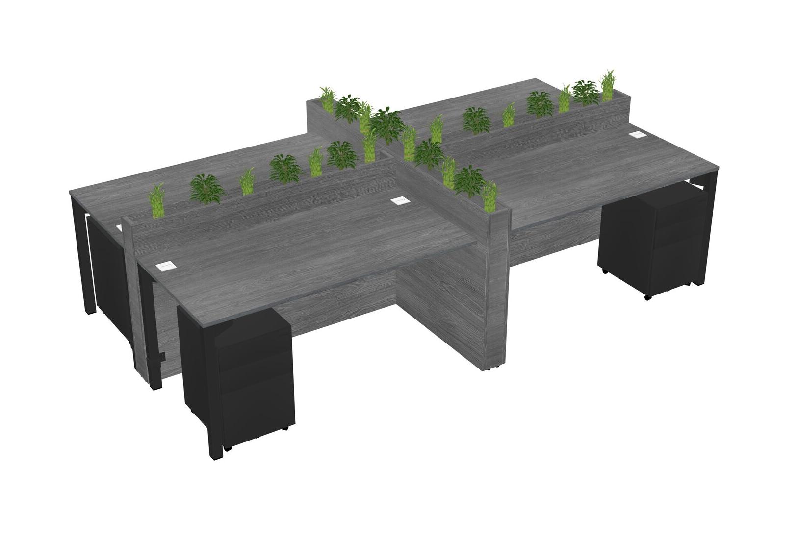 Grey Rectangular Shared Office Desk For 4 Persons Let Nature Help Flourish Your Productivity The Base Comes With An Adjustable Shelf To Provide Space For Pots (Pots & Plants Sold Separately)