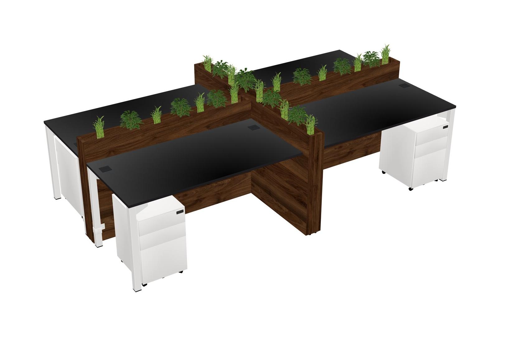 Black Rectangular Shared Office Desk For 4 Persons Let Nature Help Flourish Your Productivity The Base Comes With An Adjustable Shelf To Provide Space For Pots (Pots & Plants Sold Separately)