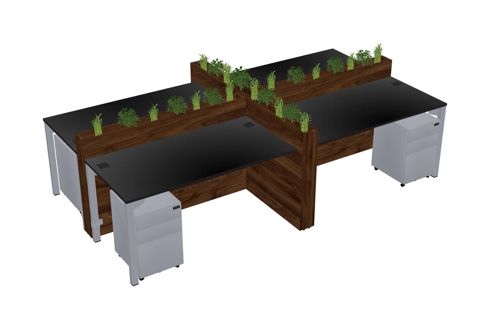 Black Rectangular Shared Office Desk For 4 Persons Let Nature Help Flourish Your Productivity The Base Comes With An Adjustable Shelf To Provide Space For Pots (Pots & Plants Sold Separately)