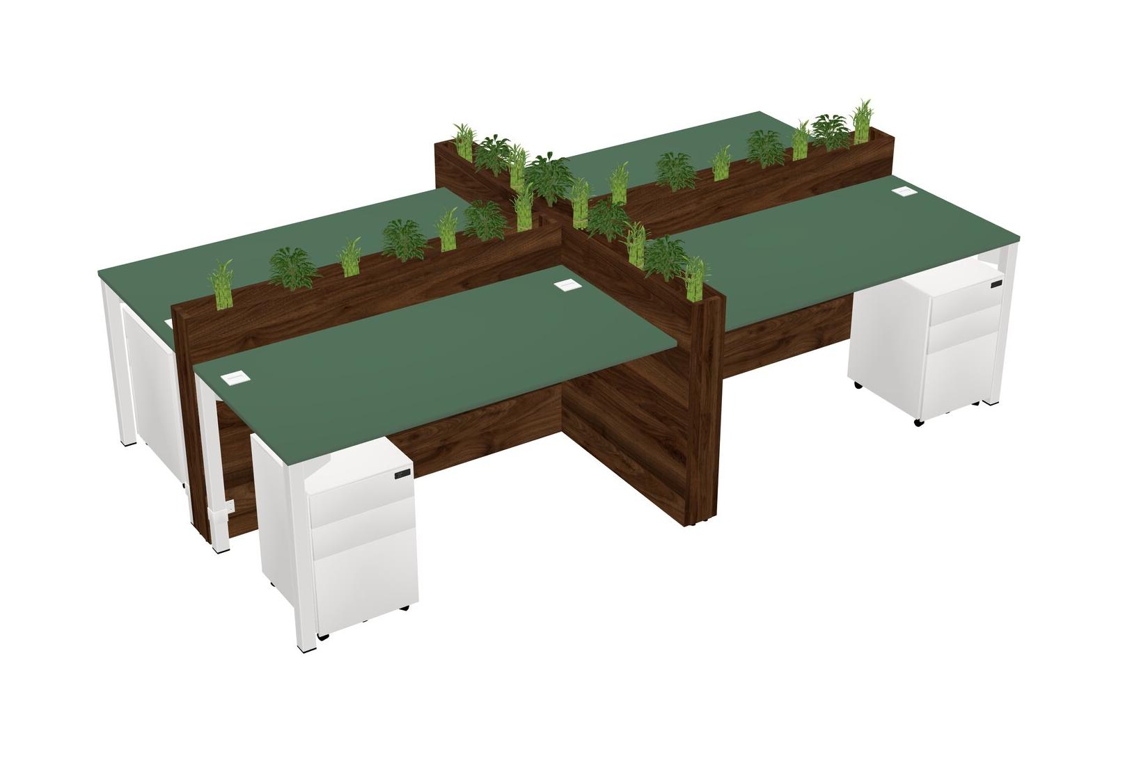 Green Rectangular Shared Office Desk For 4 Persons Let Nature Help Flourish Your Productivity The Base Comes With An Adjustable Shelf To Provide Space For Pots (Pots & Plants Sold Separately)