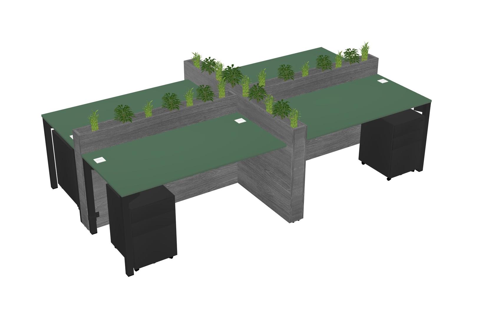 Green Rectangular Shared Office Desk For 4 Persons Let Nature Help Flourish Your Productivity The Base Comes With An Adjustable Shelf To Provide Space For Pots (Pots & Plants Sold Separately)