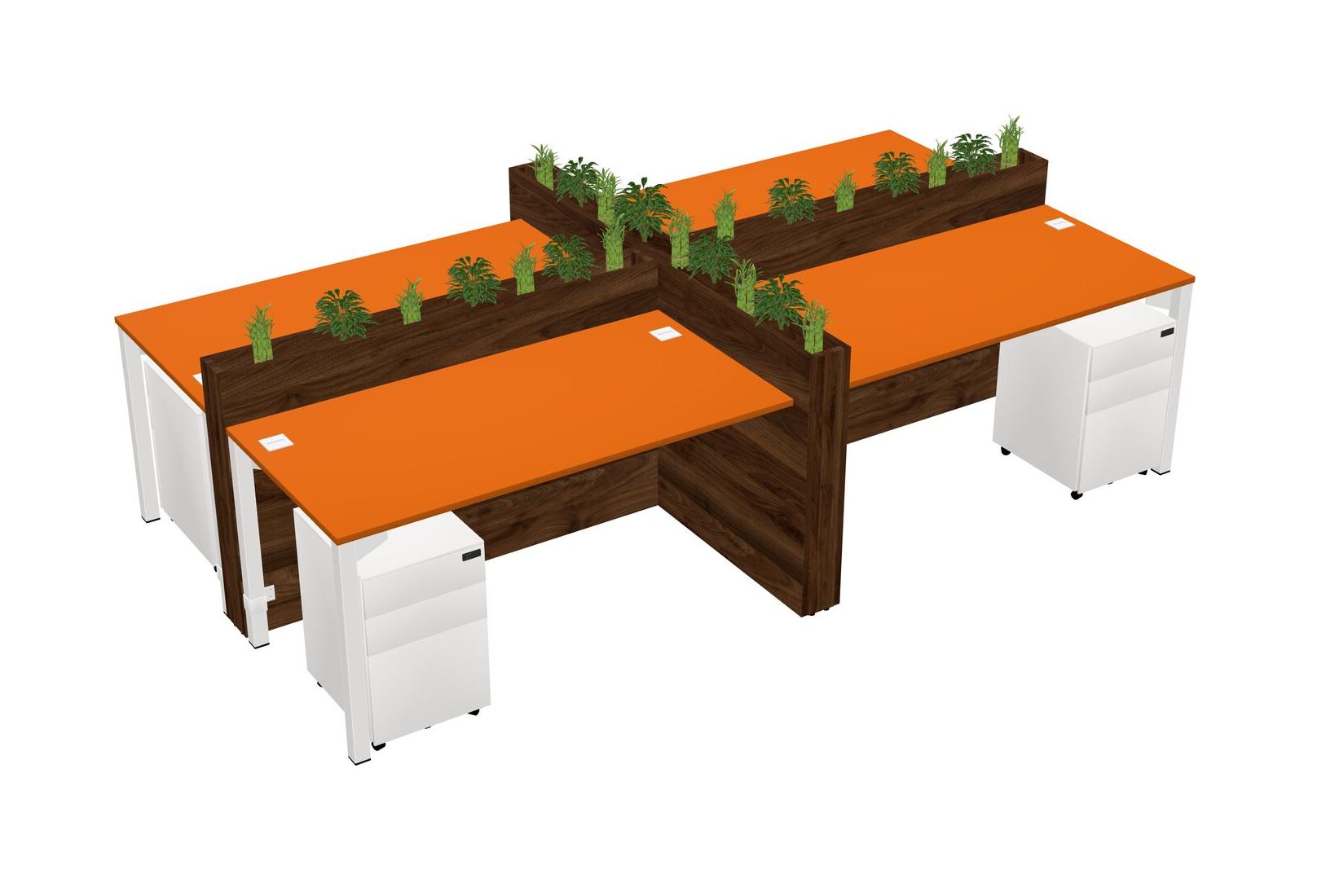 Orange Rectangular Shared Office Desk For 4 Persons Let Nature Help Flourish Your Productivity The Base Comes With An Adjustable Shelf To Provide Space For Pots (Pots & Plants Sold Separately)