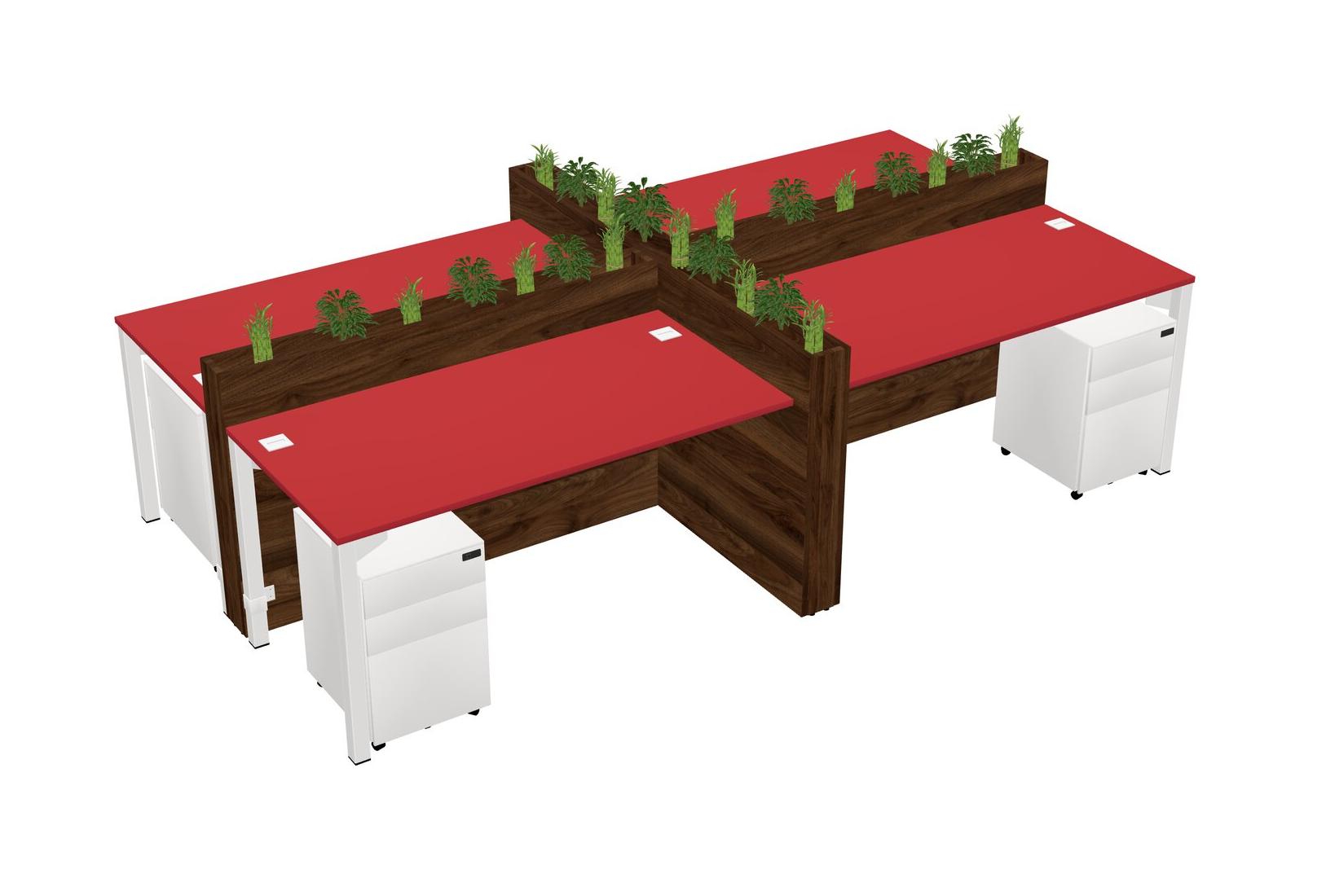 Prism Red Rectangular Shared Office Desk For 4 Persons Let Nature Help Flourish Your Productivity The Base Comes With An Adjustable Shelf To Provide Space For Pots (Pots & Plants Sold Separately)
