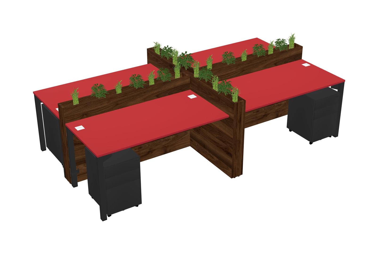 Prism Red Rectangular Shared Office Desk For 4 Persons Let Nature Help Flourish Your Productivity The Base Comes With An Adjustable Shelf To Provide Space For Pots (Pots & Plants Sold Separately)