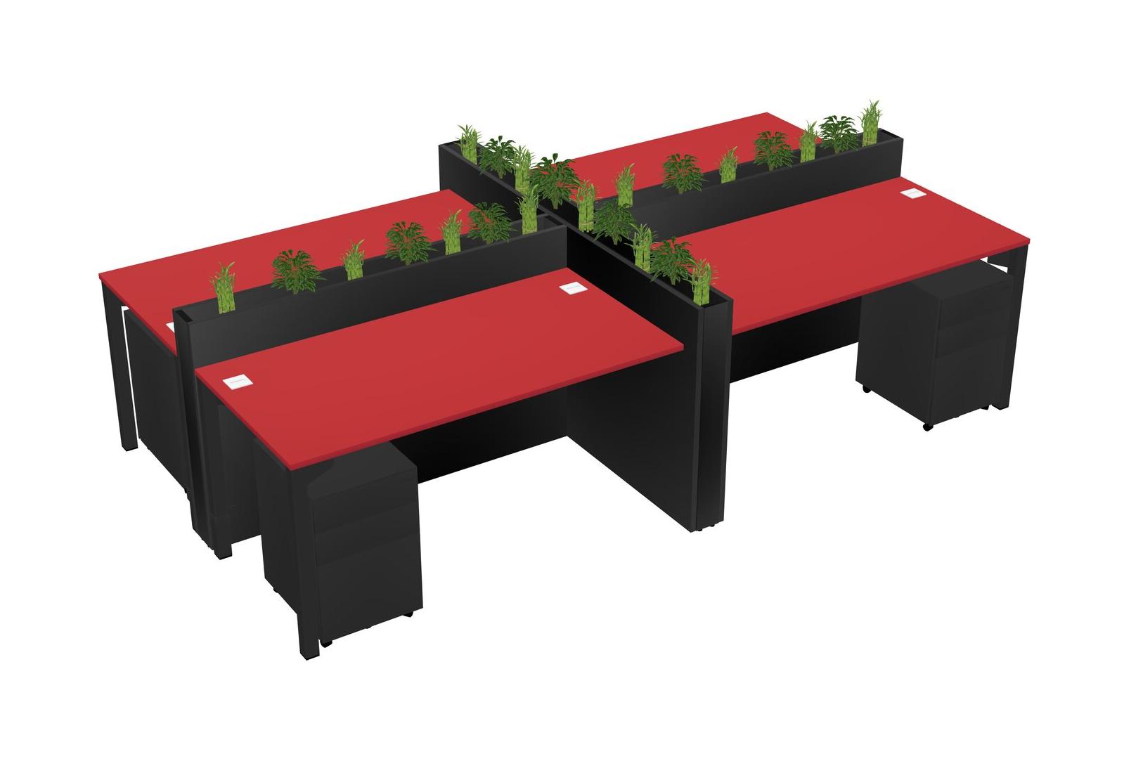 Prism Red Rectangular Shared Office Desk For 4 Persons Let Nature Help Flourish Your Productivity The Base Comes With An Adjustable Shelf To Provide Space For Pots (Pots & Plants Sold Separately)