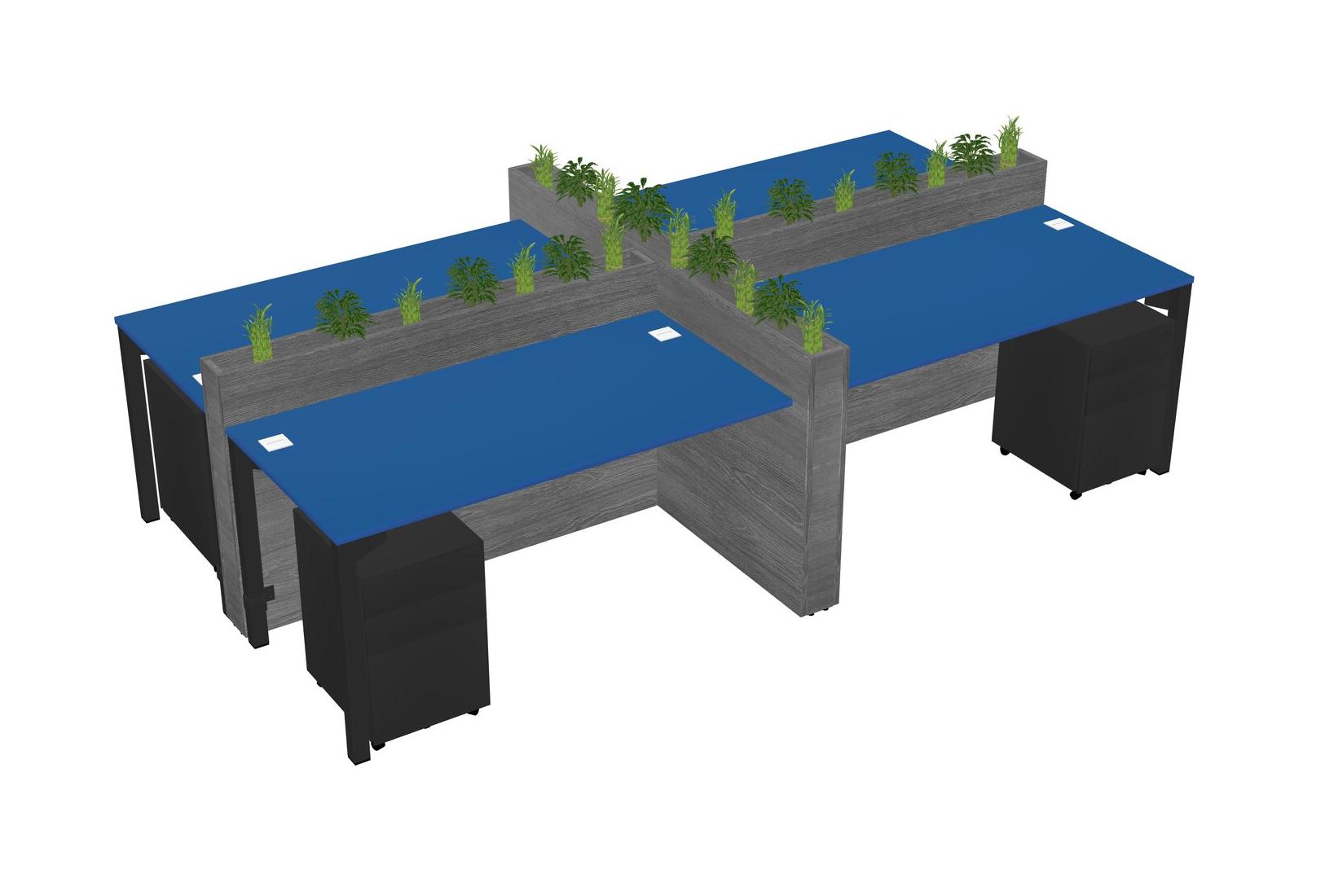 Prism Blue Rectangular Shared Office Desk For 4 Persons Let Nature Help Flourish Your Productivity The Base Comes With An Adjustable Shelf To Provide Space For Pots (Pots & Plants Sold Separately)