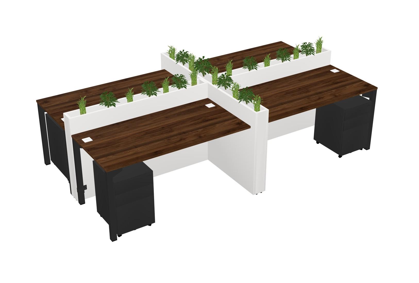 Columbia Walnut Rectangular Shared Office Desk For 4 Persons Let Nature Help Flourish Your Productivity The Base Comes With An Adjustable Shelf To Provide Space For Pots (Pots & Plants Sold Separately)
