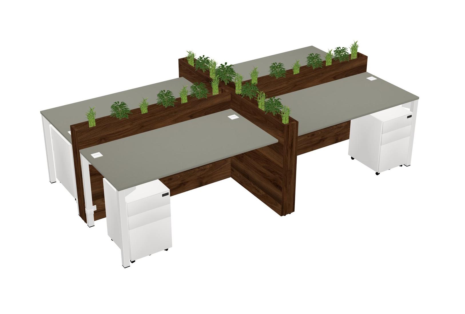 Grey Shadows Rectangular Shared Office Desk For 4 Persons Let Nature Help Flourish Your Productivity The Base Comes With An Adjustable Shelf To Provide Space For Pots (Pots & Plants Sold Separately)