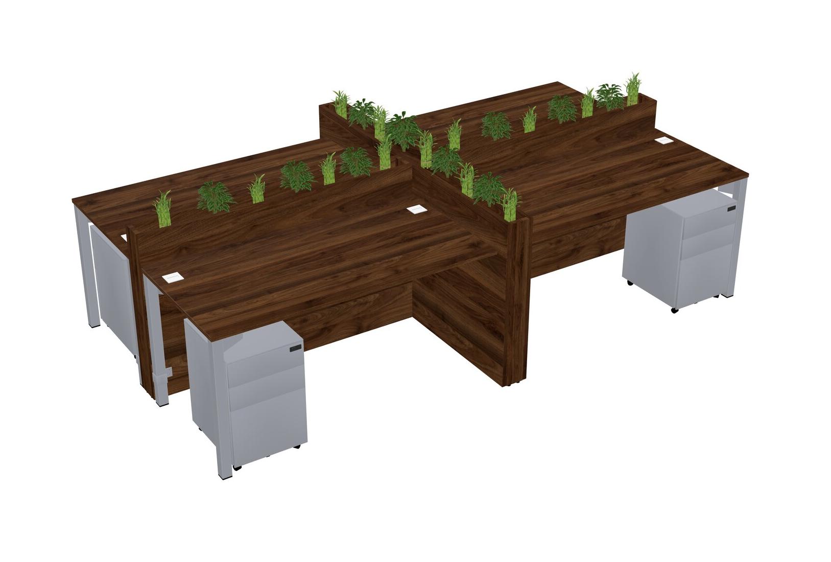 Columbia Walnut Rectangular Shared Office Desk For 4 Persons Let Nature Help Flourish Your Productivity The Base Comes With An Adjustable Shelf To Provide Space For Pots (Pots & Plants Sold Separately)
