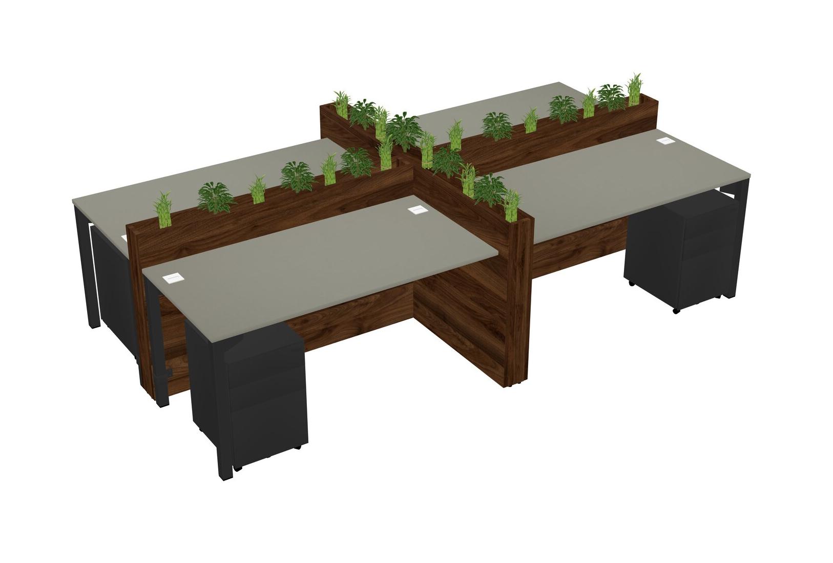 Grey Shadows Rectangular Shared Office Desk For 4 Persons Let Nature Help Flourish Your Productivity The Base Comes With An Adjustable Shelf To Provide Space For Pots (Pots & Plants Sold Separately)