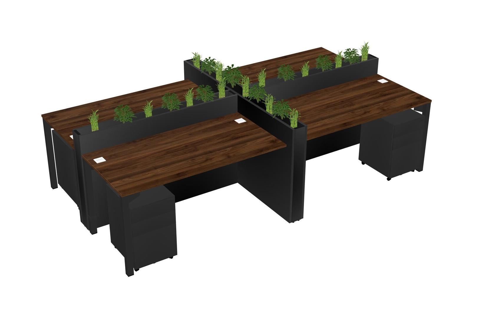 Columbia Walnut Rectangular Shared Office Desk For 4 Persons Let Nature Help Flourish Your Productivity The Base Comes With An Adjustable Shelf To Provide Space For Pots (Pots & Plants Sold Separately)