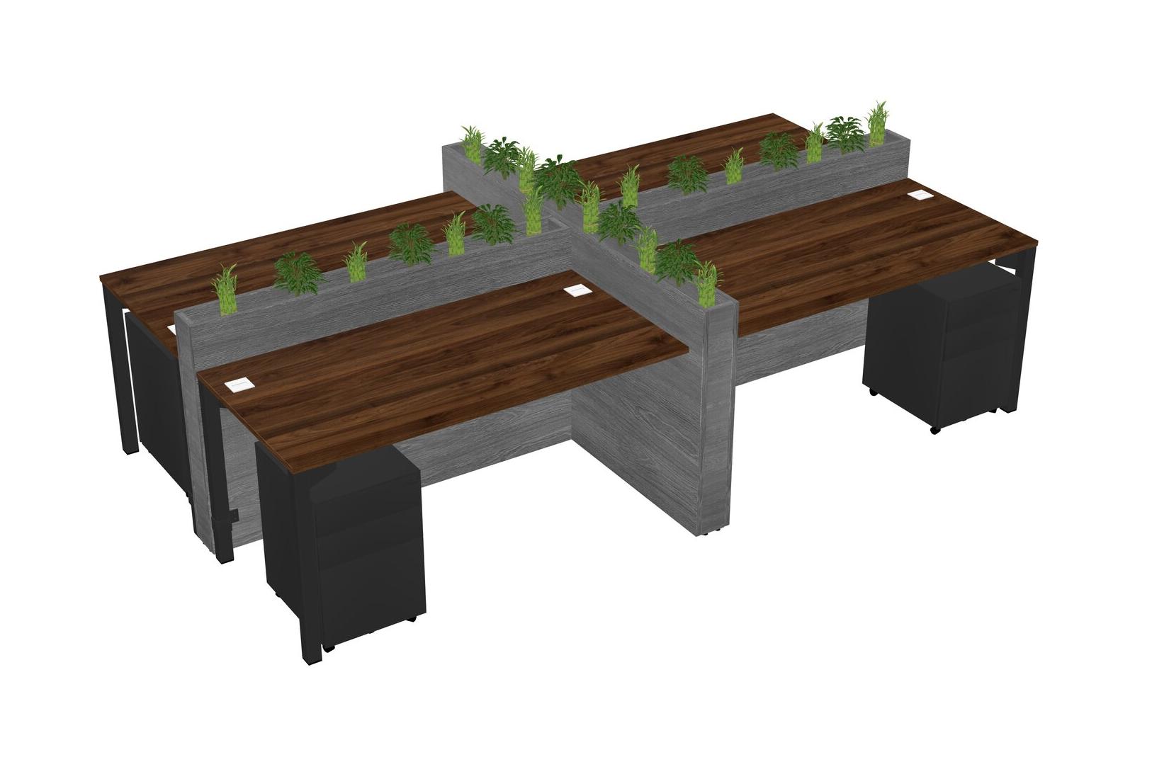 Columbia Walnut Rectangular Shared Office Desk For 4 Persons Let Nature Help Flourish Your Productivity The Base Comes With An Adjustable Shelf To Provide Space For Pots (Pots & Plants Sold Separately)