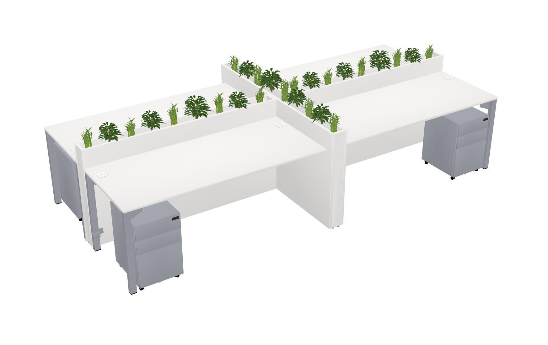 White Rectangular Shared Office Desk For 4 Persons Let Nature Help Flourish Your Productivity The Base Comes With An Adjustable Shelf To Provide Space For Pots (Pots & Plants Sold Separately)
