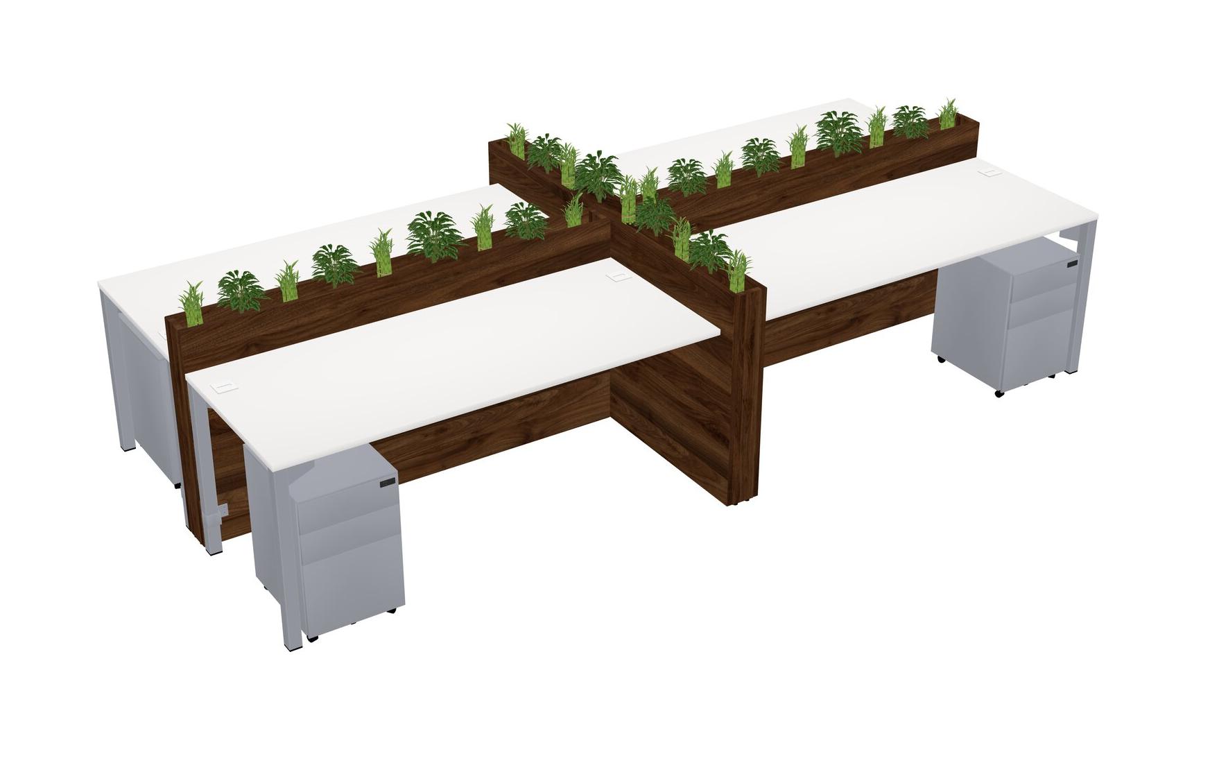White Rectangular Shared Office Desk For 4 Persons Let Nature Help Flourish Your Productivity The Base Comes With An Adjustable Shelf To Provide Space For Pots (Pots & Plants Sold Separately)