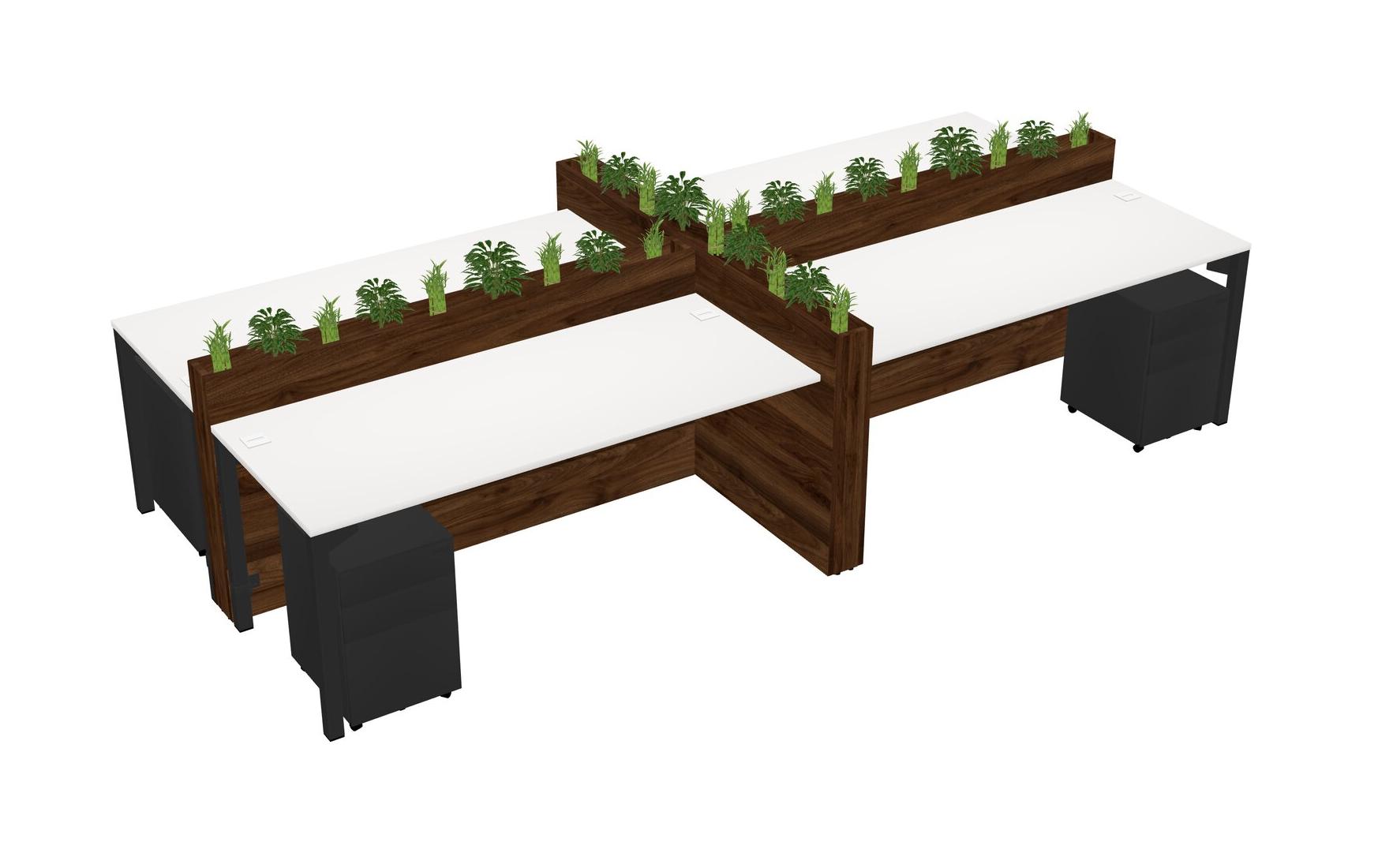 White Rectangular Shared Office Desk For 4 Persons Let Nature Help Flourish Your Productivity The Base Comes With An Adjustable Shelf To Provide Space For Pots (Pots & Plants Sold Separately)