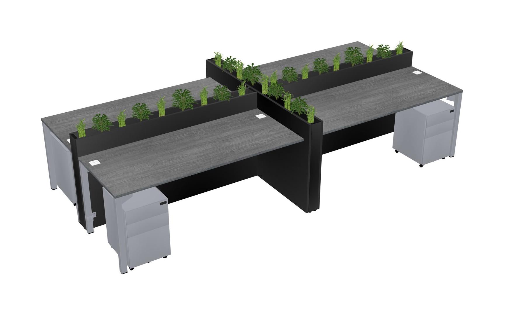 Grey Rectangular Shared Office Desk For 4 Persons Let Nature Help Flourish Your Productivity The Base Comes With An Adjustable Shelf To Provide Space For Pots (Pots & Plants Sold Separately)