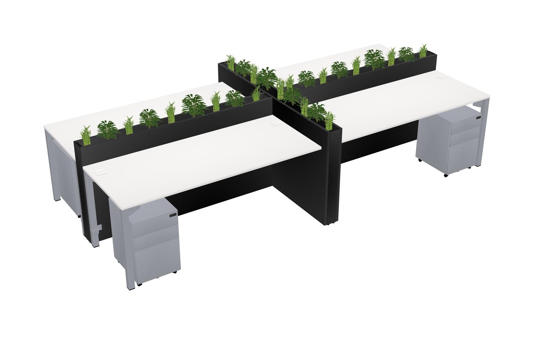 White Rectangular Shared Office Desk For 4 Persons Let Nature Help Flourish Your Productivity The Base Comes With An Adjustable Shelf To Provide Space For Pots (Pots & Plants Sold Separately)