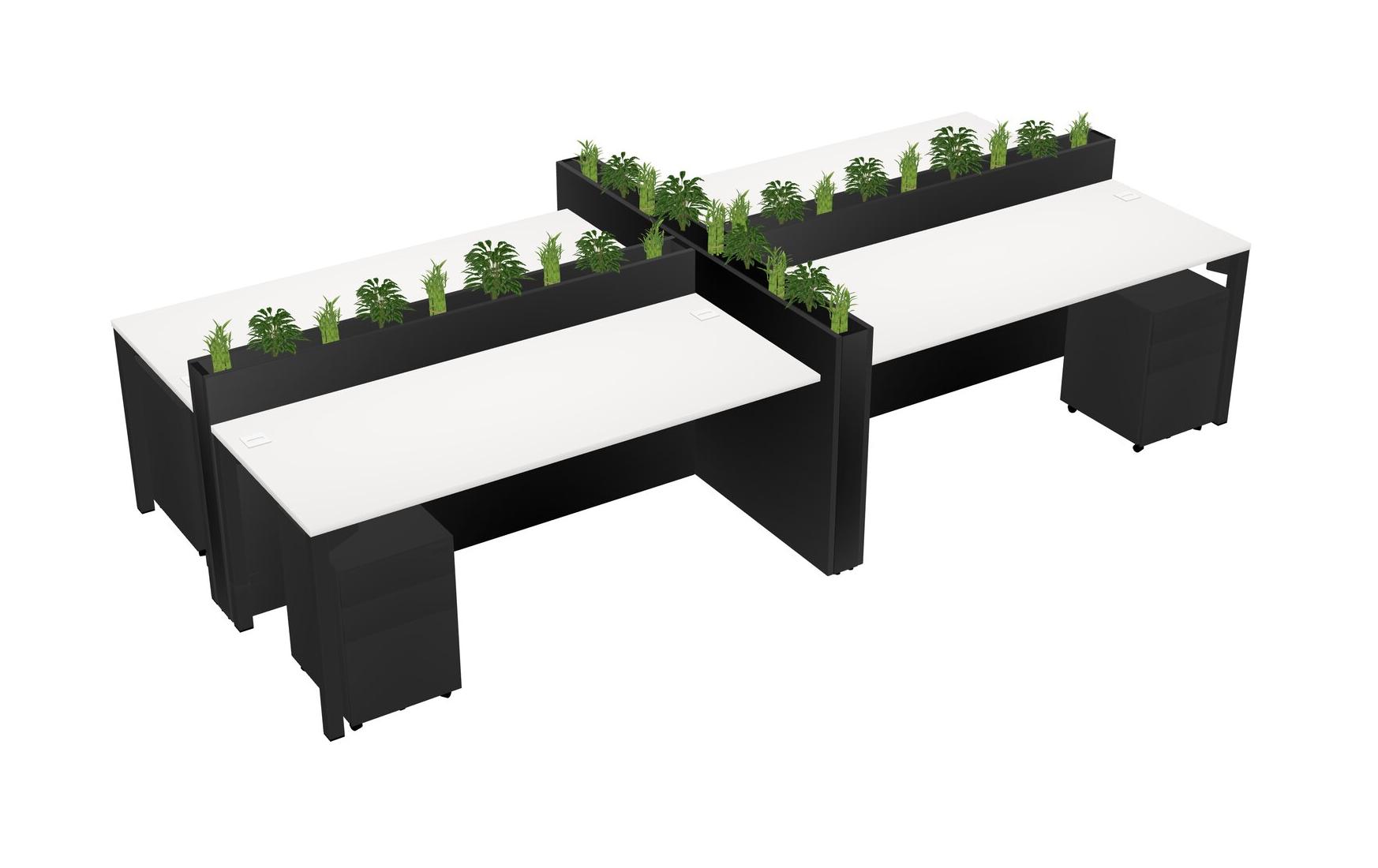 White Rectangular Shared Office Desk For 4 Persons Let Nature Help Flourish Your Productivity The Base Comes With An Adjustable Shelf To Provide Space For Pots (Pots & Plants Sold Separately)