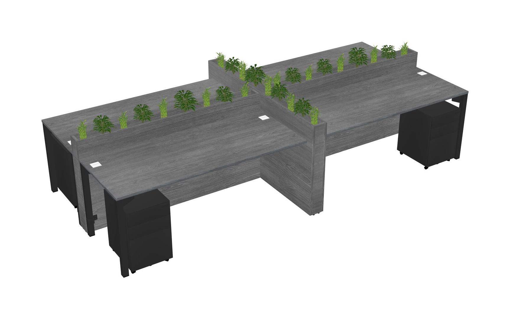 Grey Rectangular Shared Office Desk For 4 Persons Let Nature Help Flourish Your Productivity The Base Comes With An Adjustable Shelf To Provide Space For Pots (Pots & Plants Sold Separately)