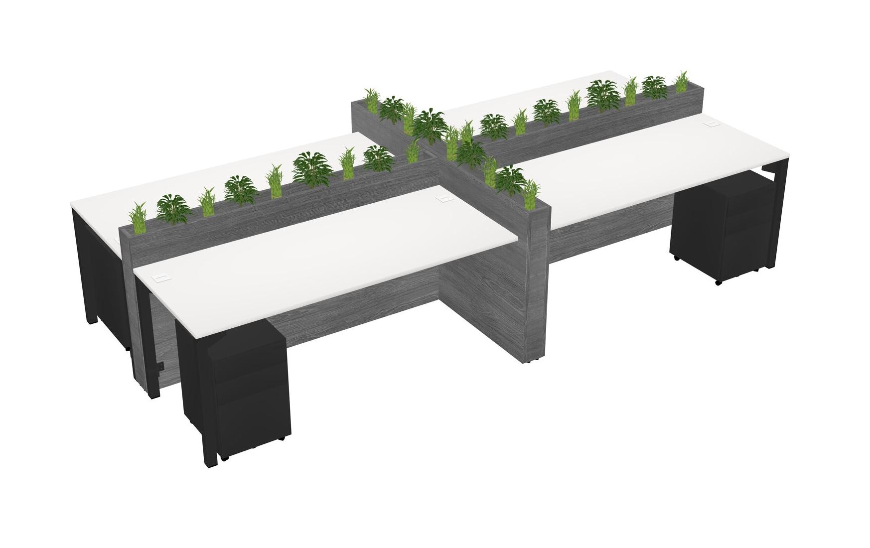 White Rectangular Shared Office Desk For 4 Persons Let Nature Help Flourish Your Productivity The Base Comes With An Adjustable Shelf To Provide Space For Pots (Pots & Plants Sold Separately)