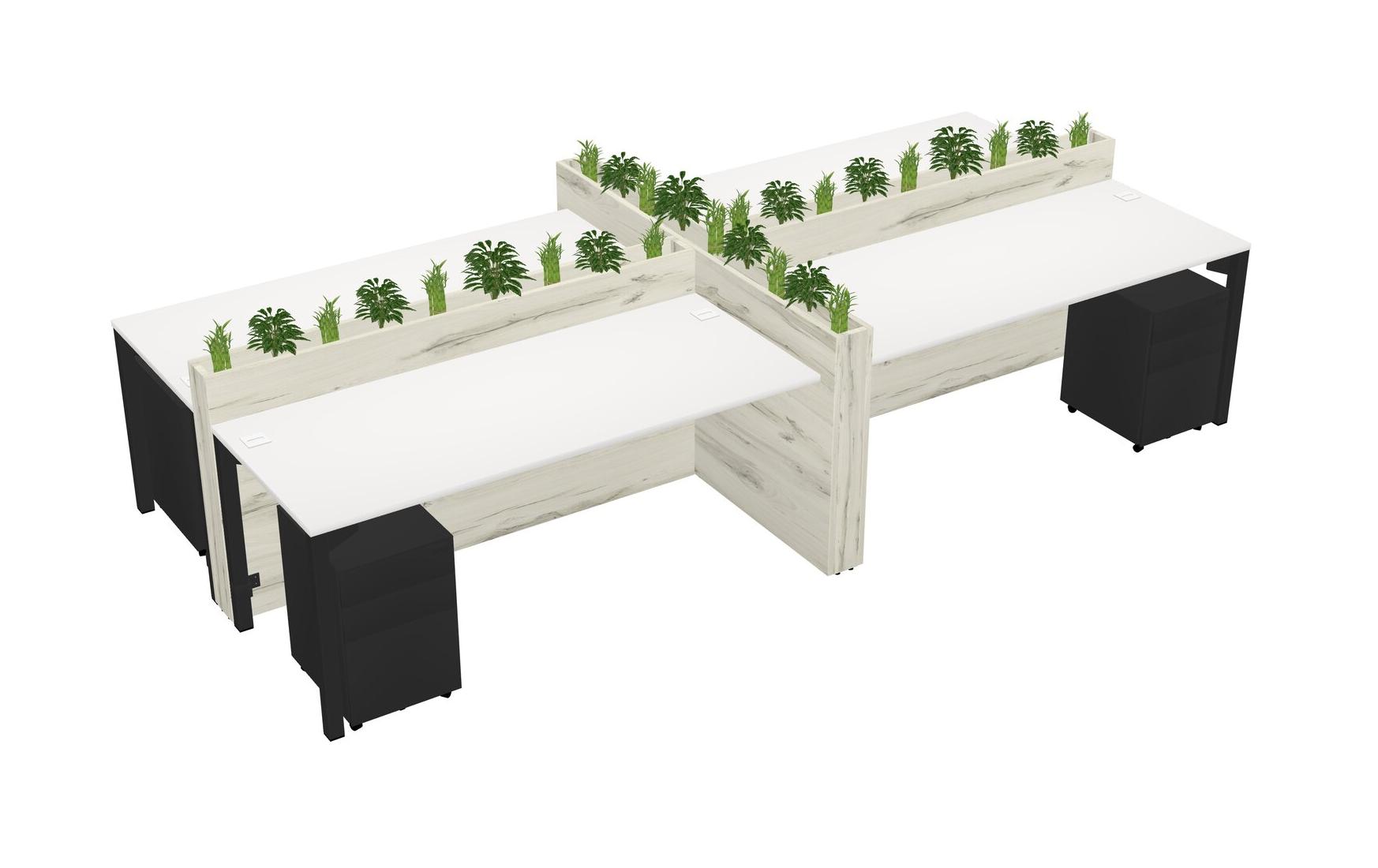 White Rectangular Shared Office Desk For 4 Persons Let Nature Help Flourish Your Productivity The Base Comes With An Adjustable Shelf To Provide Space For Pots (Pots & Plants Sold Separately)