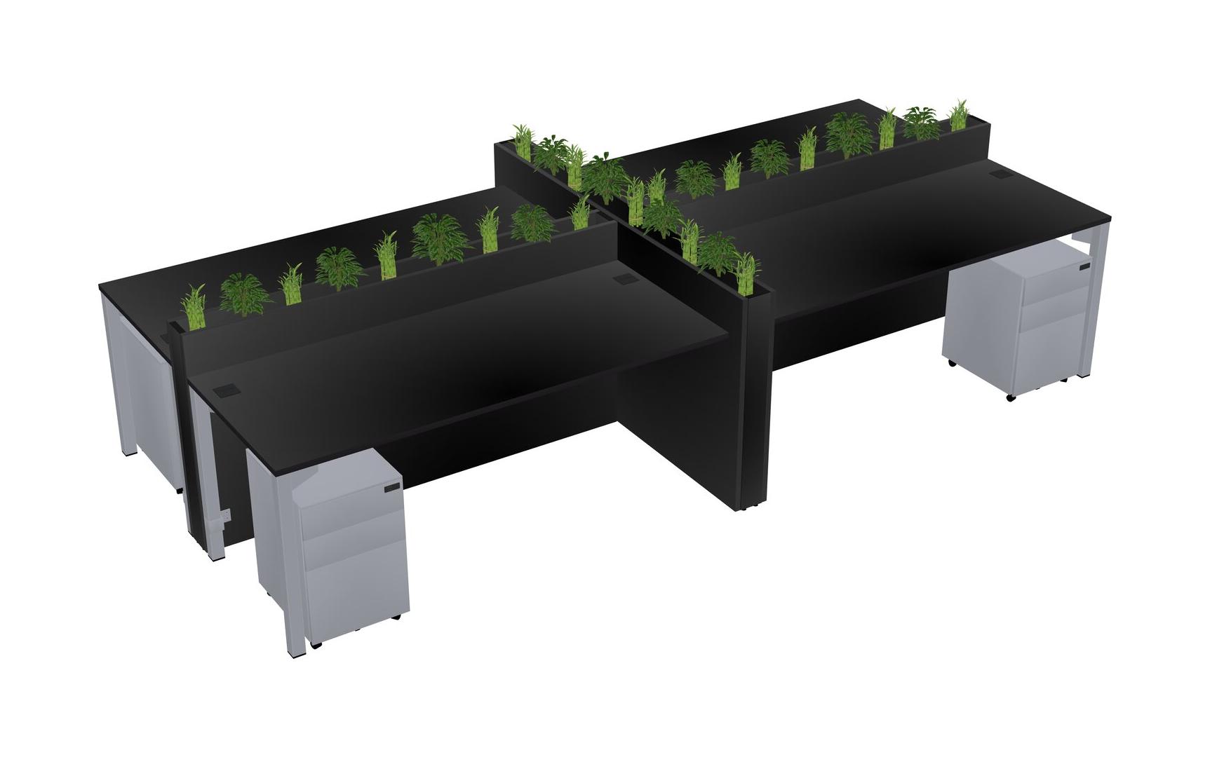 Black Rectangular Shared Office Desk For 4 Persons Let Nature Help Flourish Your Productivity The Base Comes With An Adjustable Shelf To Provide Space For Pots (Pots & Plants Sold Separately)