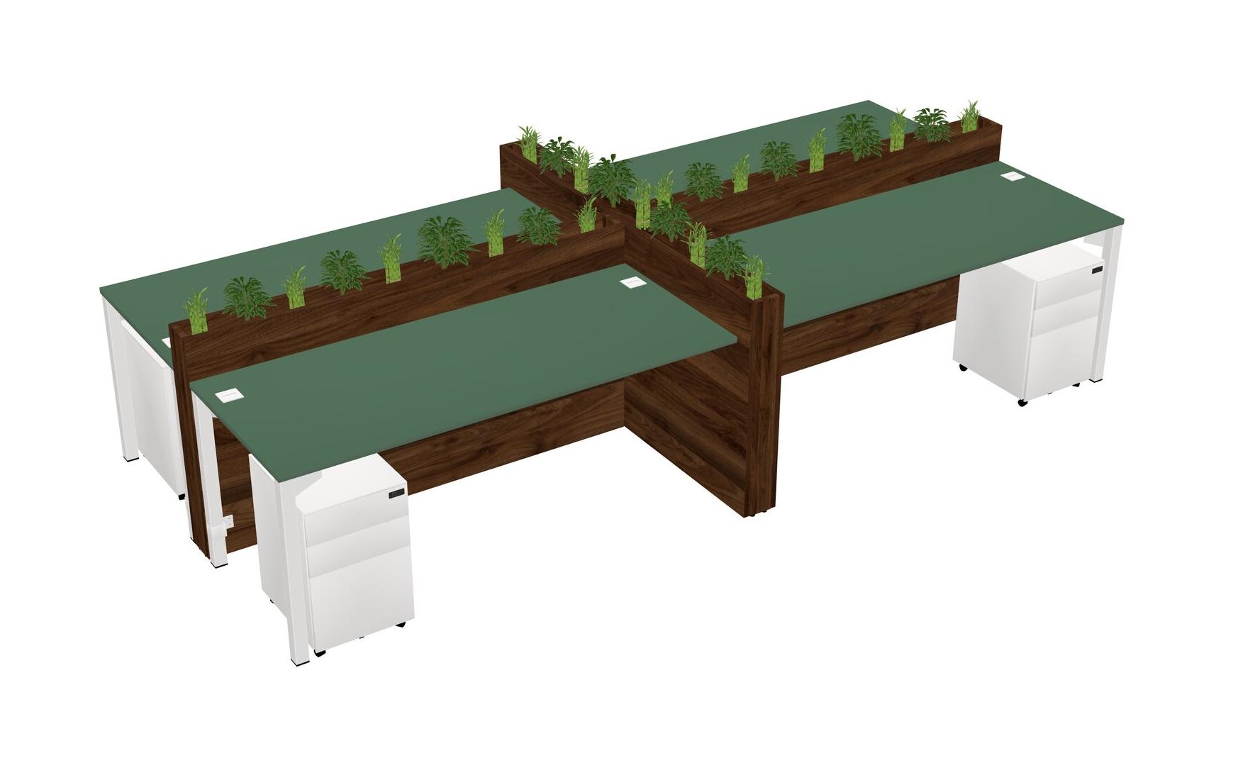 Green Rectangular Shared Office Desk For 4 Persons Let Nature Help Flourish Your Productivity The Base Comes With An Adjustable Shelf To Provide Space For Pots (Pots & Plants Sold Separately)
