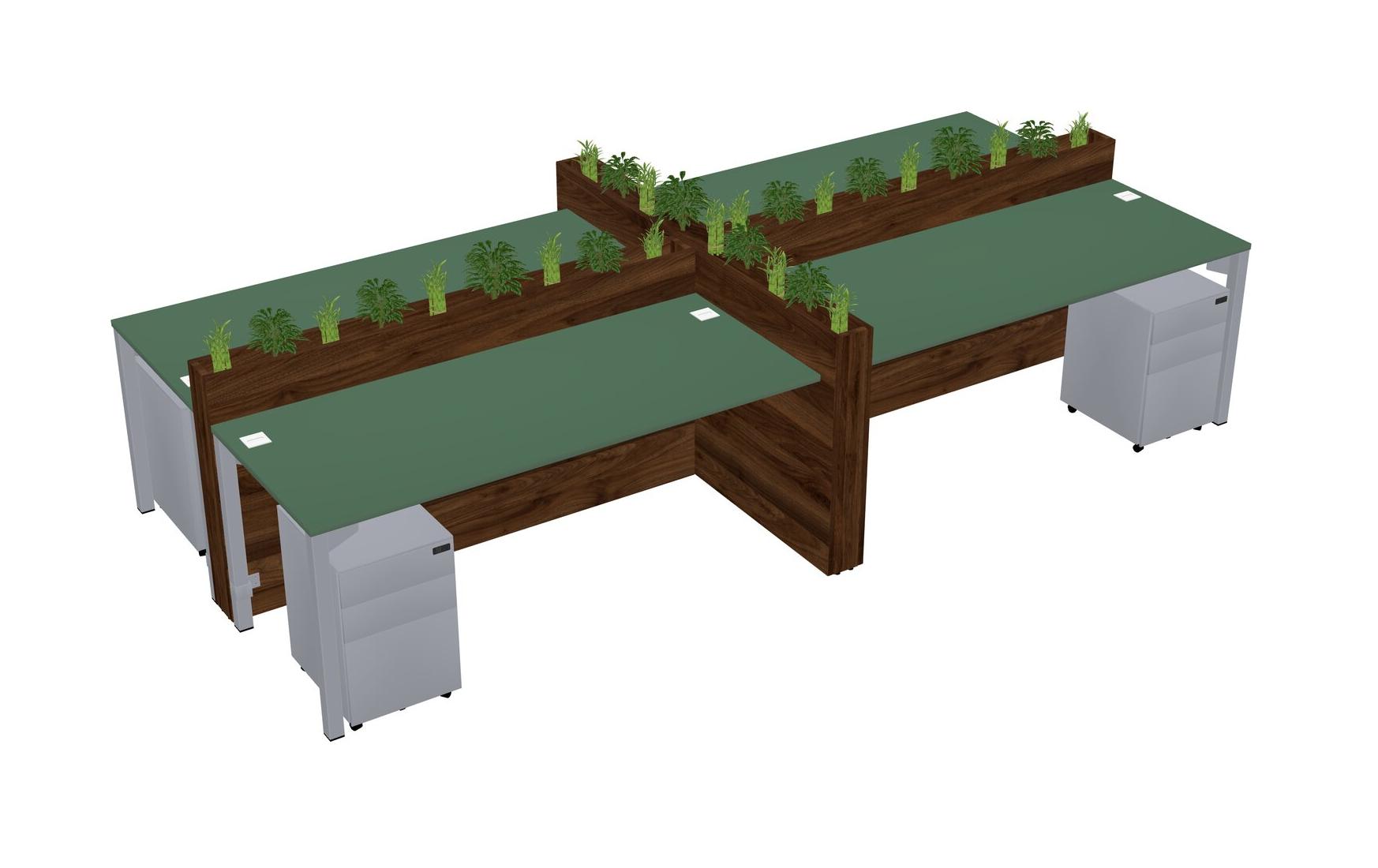 Green Rectangular Shared Office Desk For 4 Persons Let Nature Help Flourish Your Productivity The Base Comes With An Adjustable Shelf To Provide Space For Pots (Pots & Plants Sold Separately)