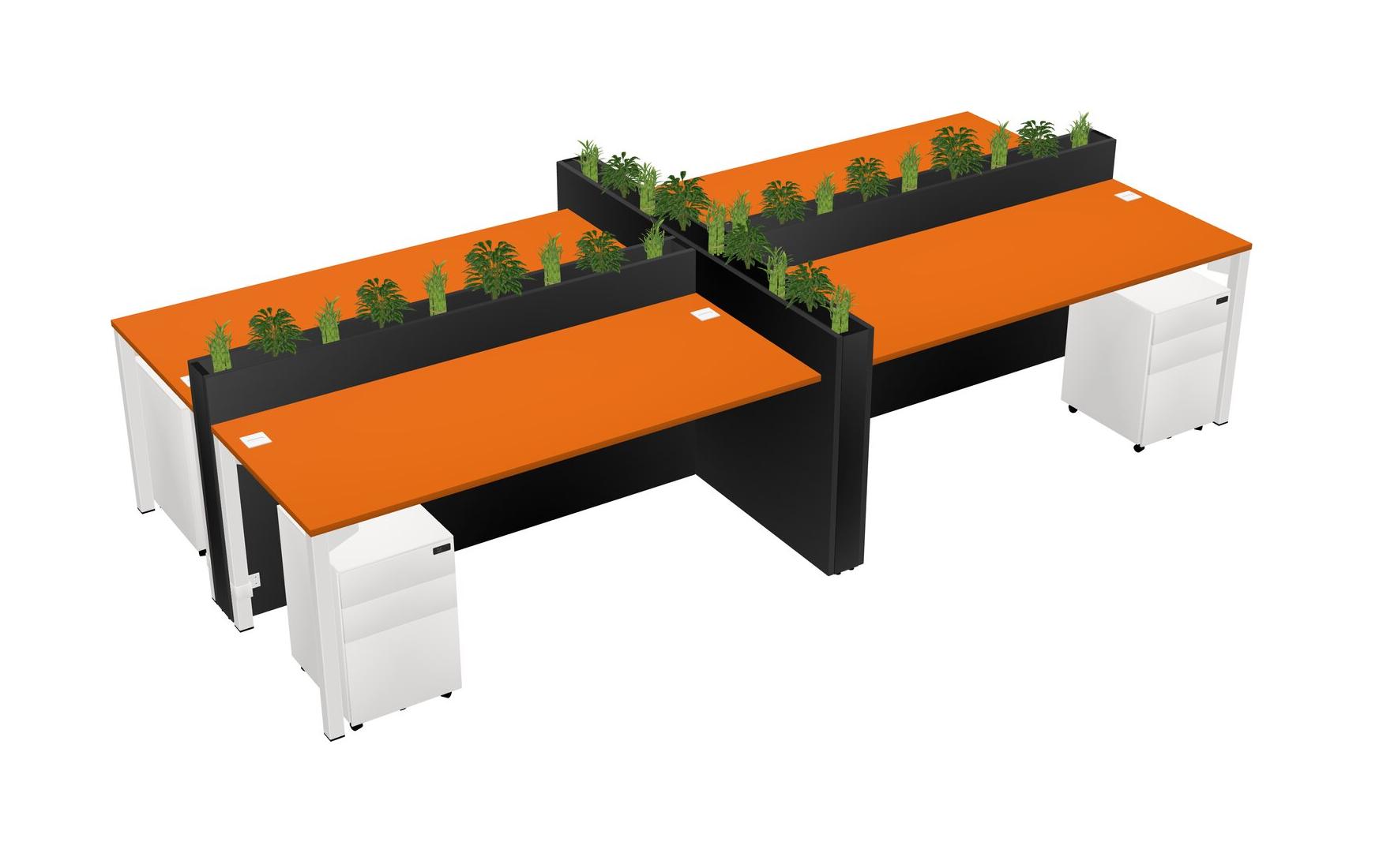 Orange Rectangular Shared Office Desk For 4 Persons Let Nature Help Flourish Your Productivity The Base Comes With An Adjustable Shelf To Provide Space For Pots (Pots & Plants Sold Separately)
