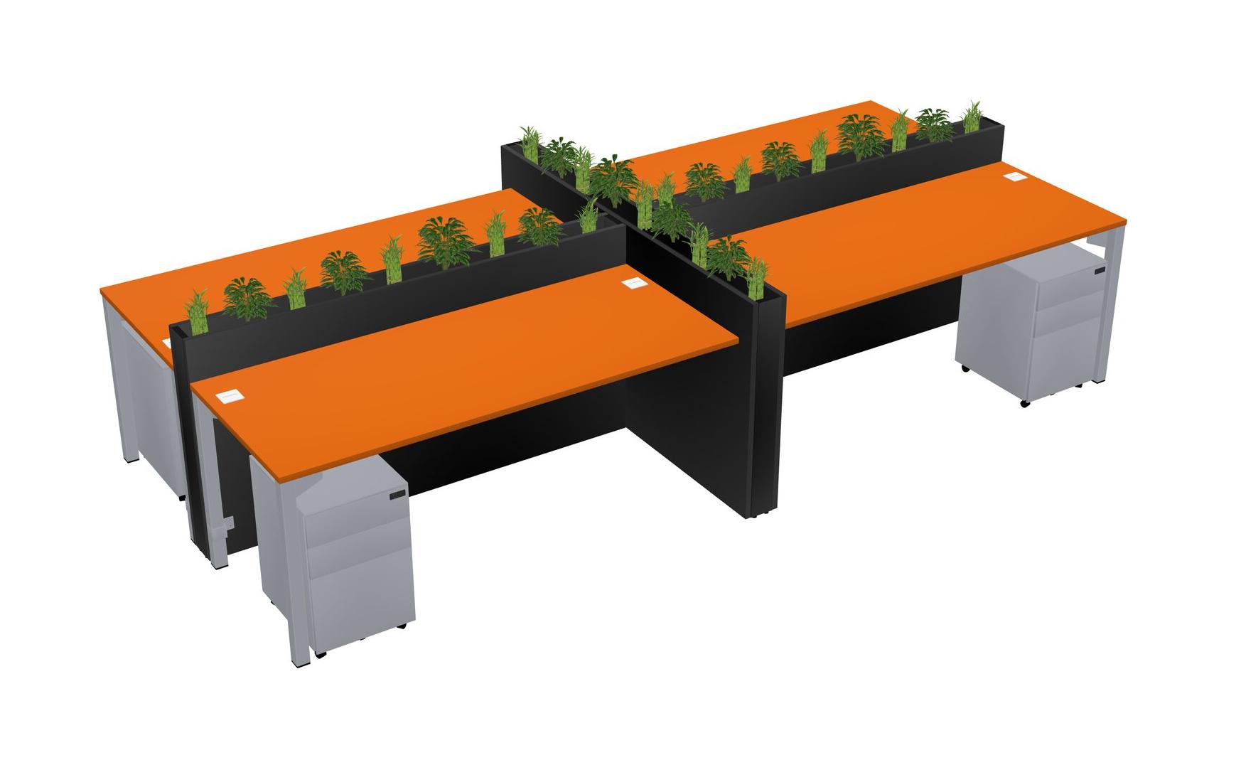 Orange Rectangular Shared Office Desk For 4 Persons Let Nature Help Flourish Your Productivity The Base Comes With An Adjustable Shelf To Provide Space For Pots (Pots & Plants Sold Separately)