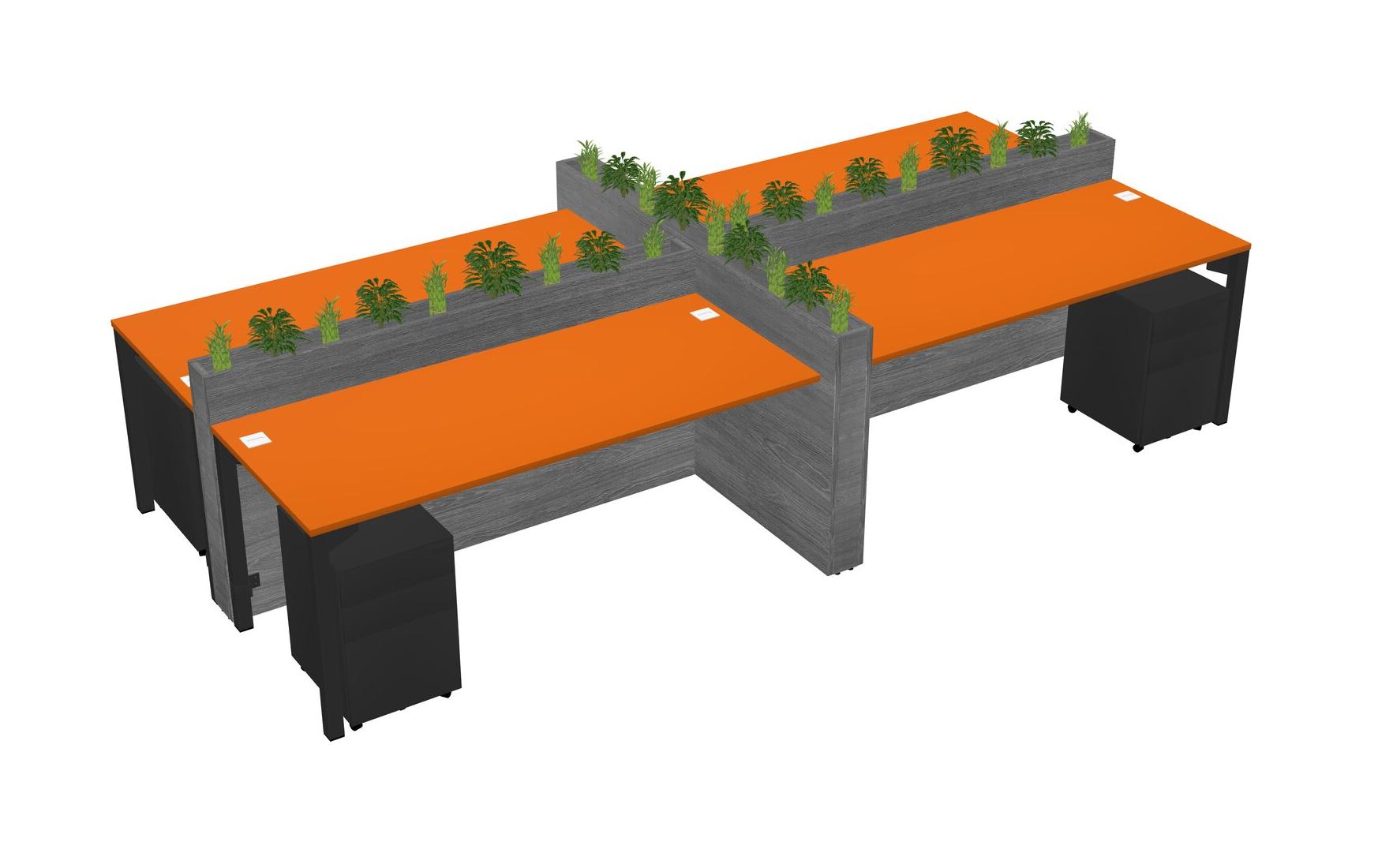 Orange Rectangular Shared Office Desk For 4 Persons Let Nature Help Flourish Your Productivity The Base Comes With An Adjustable Shelf To Provide Space For Pots (Pots & Plants Sold Separately)