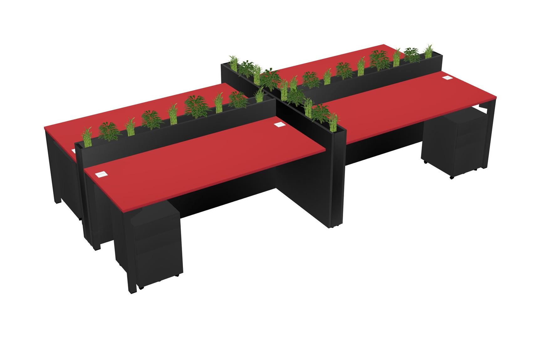 Prism Red Rectangular Shared Office Desk For 4 Persons Let Nature Help Flourish Your Productivity The Base Comes With An Adjustable Shelf To Provide Space For Pots (Pots & Plants Sold Separately)