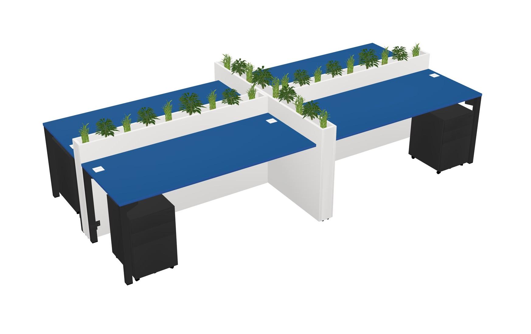 Prism Blue Rectangular Shared Office Desk For 4 Persons Let Nature Help Flourish Your Productivity The Base Comes With An Adjustable Shelf To Provide Space For Pots (Pots & Plants Sold Separately)
