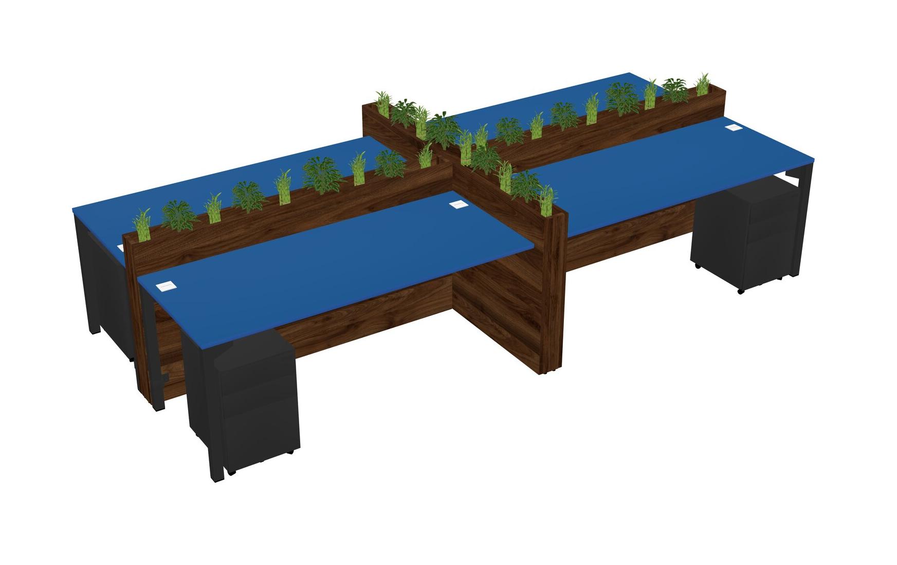 Prism Blue Rectangular Shared Office Desk For 4 Persons Let Nature Help Flourish Your Productivity The Base Comes With An Adjustable Shelf To Provide Space For Pots (Pots & Plants Sold Separately)