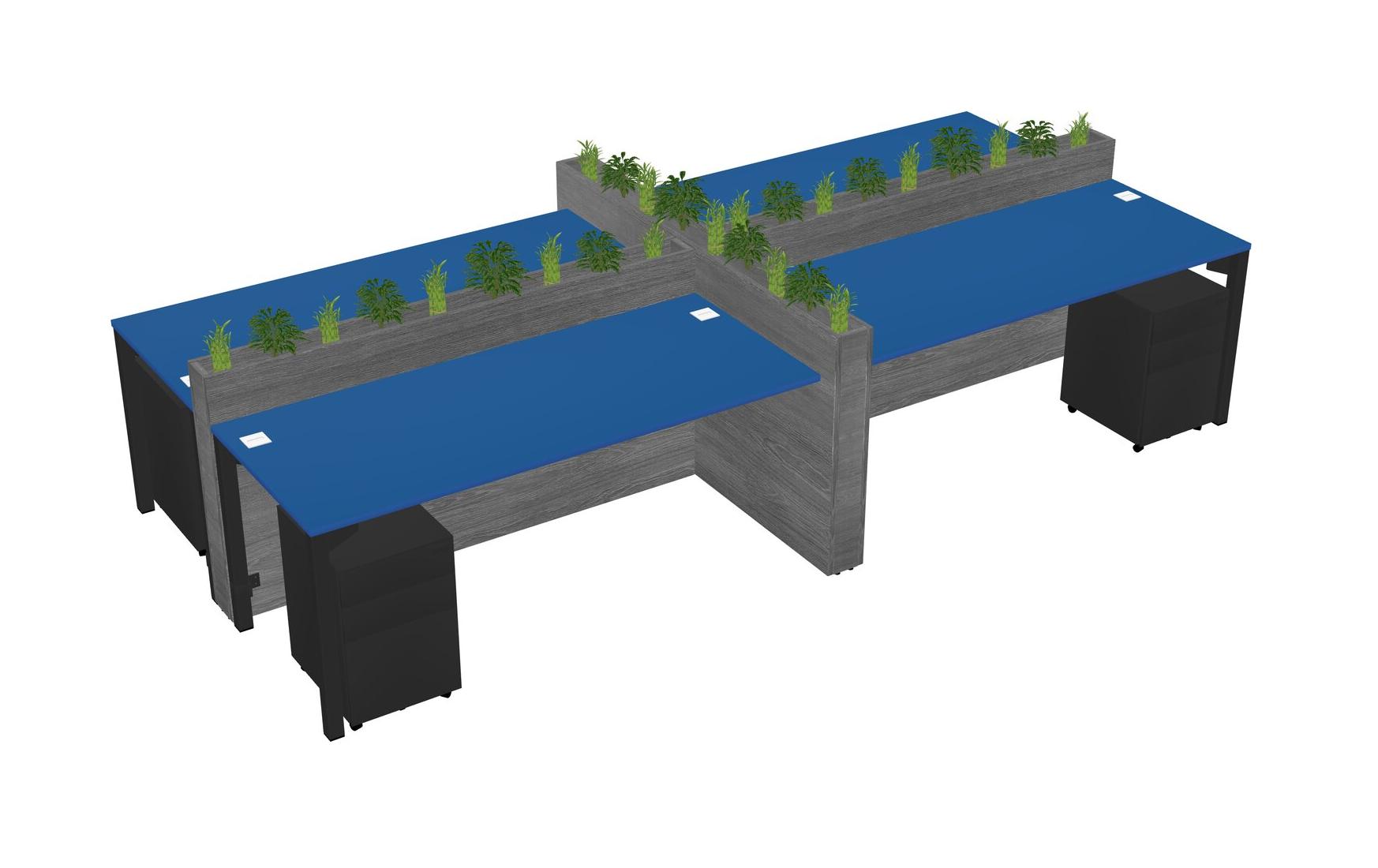 Prism Blue Rectangular Shared Office Desk For 4 Persons Let Nature Help Flourish Your Productivity The Base Comes With An Adjustable Shelf To Provide Space For Pots (Pots & Plants Sold Separately)