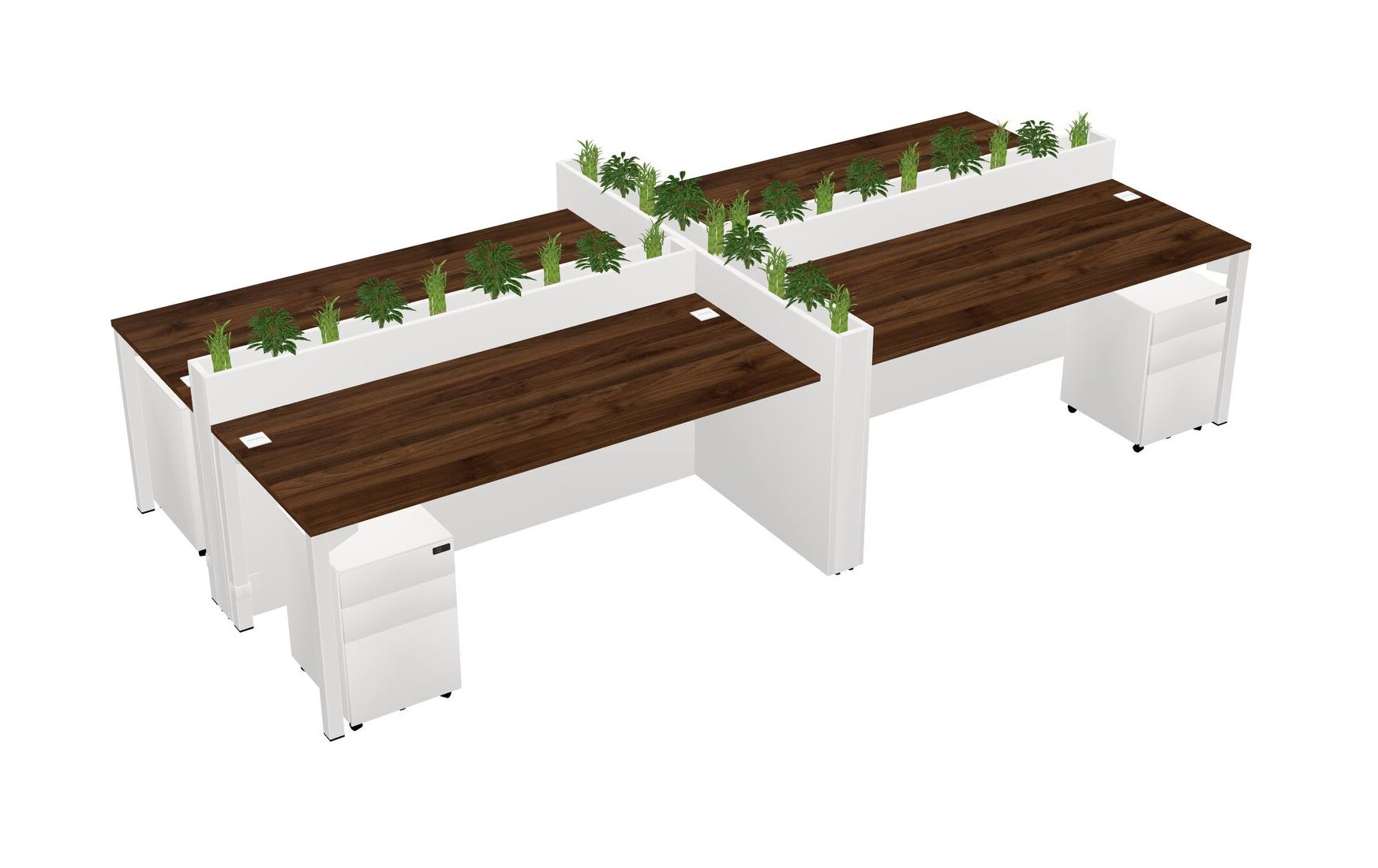 Columbia Walnut Rectangular Shared Office Desk For 4 Persons Let Nature Help Flourish Your Productivity The Base Comes With An Adjustable Shelf To Provide Space For Pots (Pots & Plants Sold Separately)