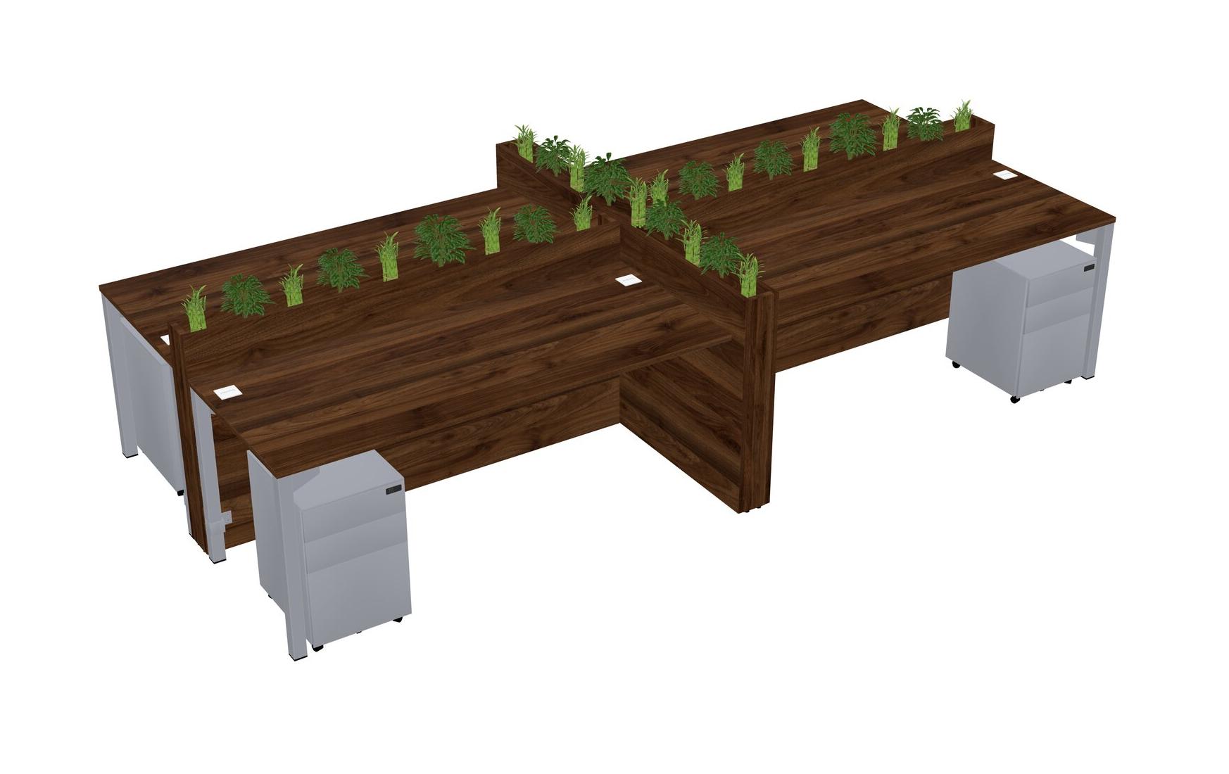 Columbia Walnut Rectangular Shared Office Desk For 4 Persons Let Nature Help Flourish Your Productivity The Base Comes With An Adjustable Shelf To Provide Space For Pots (Pots & Plants Sold Separately)