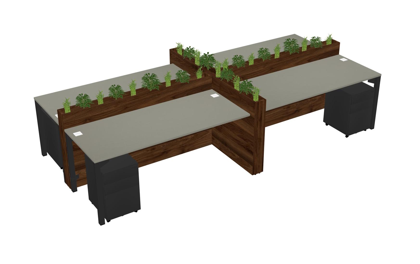 Grey Shadows Rectangular Shared Office Desk For 4 Persons Let Nature Help Flourish Your Productivity The Base Comes With An Adjustable Shelf To Provide Space For Pots (Pots & Plants Sold Separately)