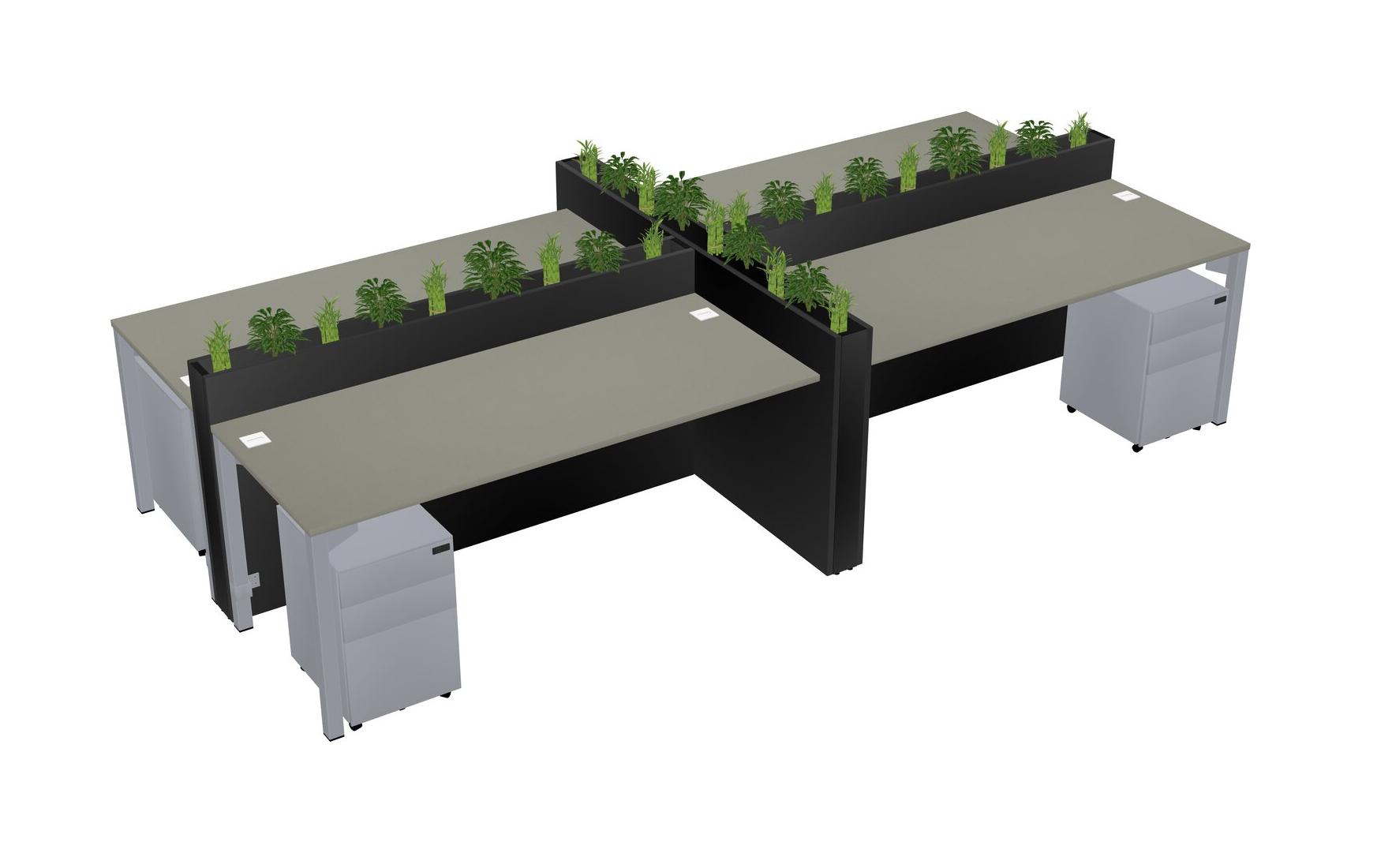 Grey Shadows Rectangular Shared Office Desk For 4 Persons Let Nature Help Flourish Your Productivity The Base Comes With An Adjustable Shelf To Provide Space For Pots (Pots & Plants Sold Separately)