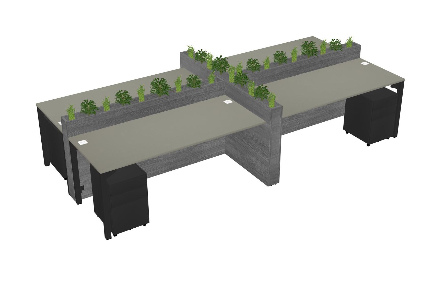 Grey Shadows Rectangular Shared Office Desk For 4 Persons Let Nature Help Flourish Your Productivity The Base Comes With An Adjustable Shelf To Provide Space For Pots (Pots & Plants Sold Separately)