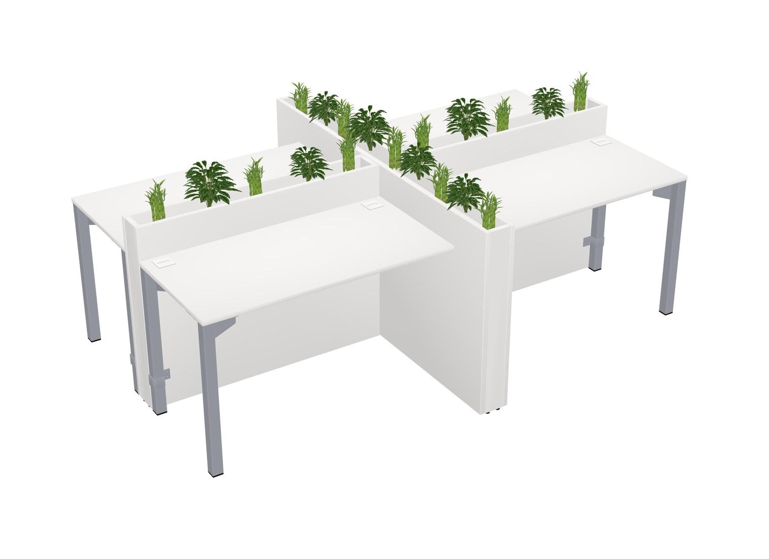 White Rectangular Shared Office Desk For 4 Persons Let Nature Help Flourish Your Productivity The Base Comes With An Adjustable Shelf To Provide Space For Pots (Pots & Plants Sold Separately)