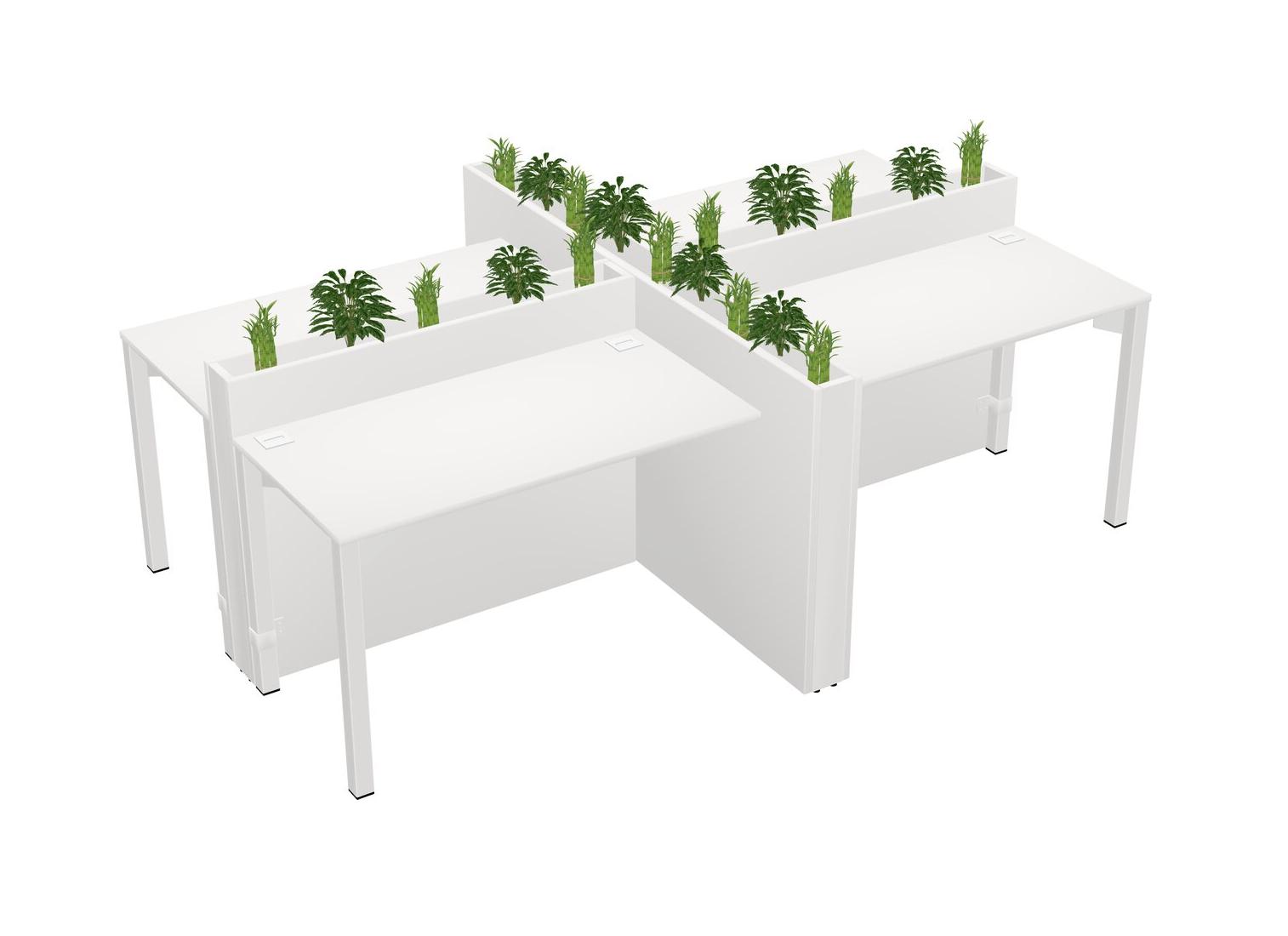 White Rectangular Shared Office Desk For 4 Persons Let Nature Help Flourish Your Productivity The Base Comes With An Adjustable Shelf To Provide Space For Pots (Pots & Plants Sold Separately)