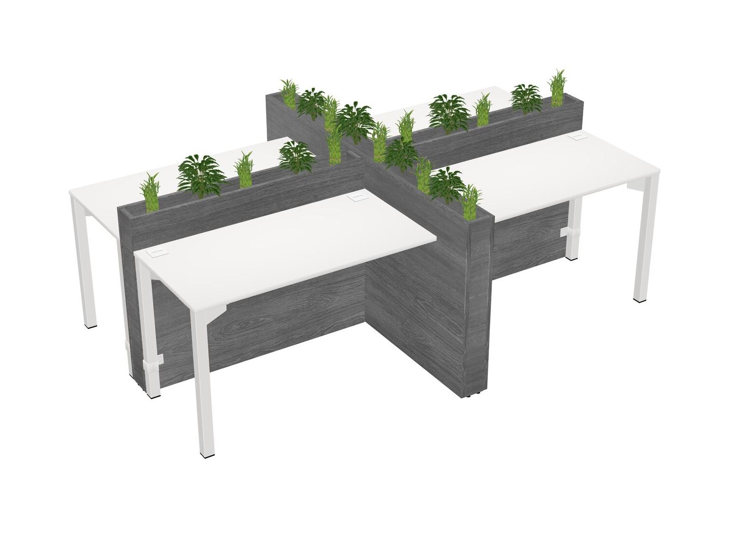 White Rectangular Shared Office Desk For 4 Persons Let Nature Help Flourish Your Productivity The Base Comes With An Adjustable Shelf To Provide Space For Pots (Pots & Plants Sold Separately)