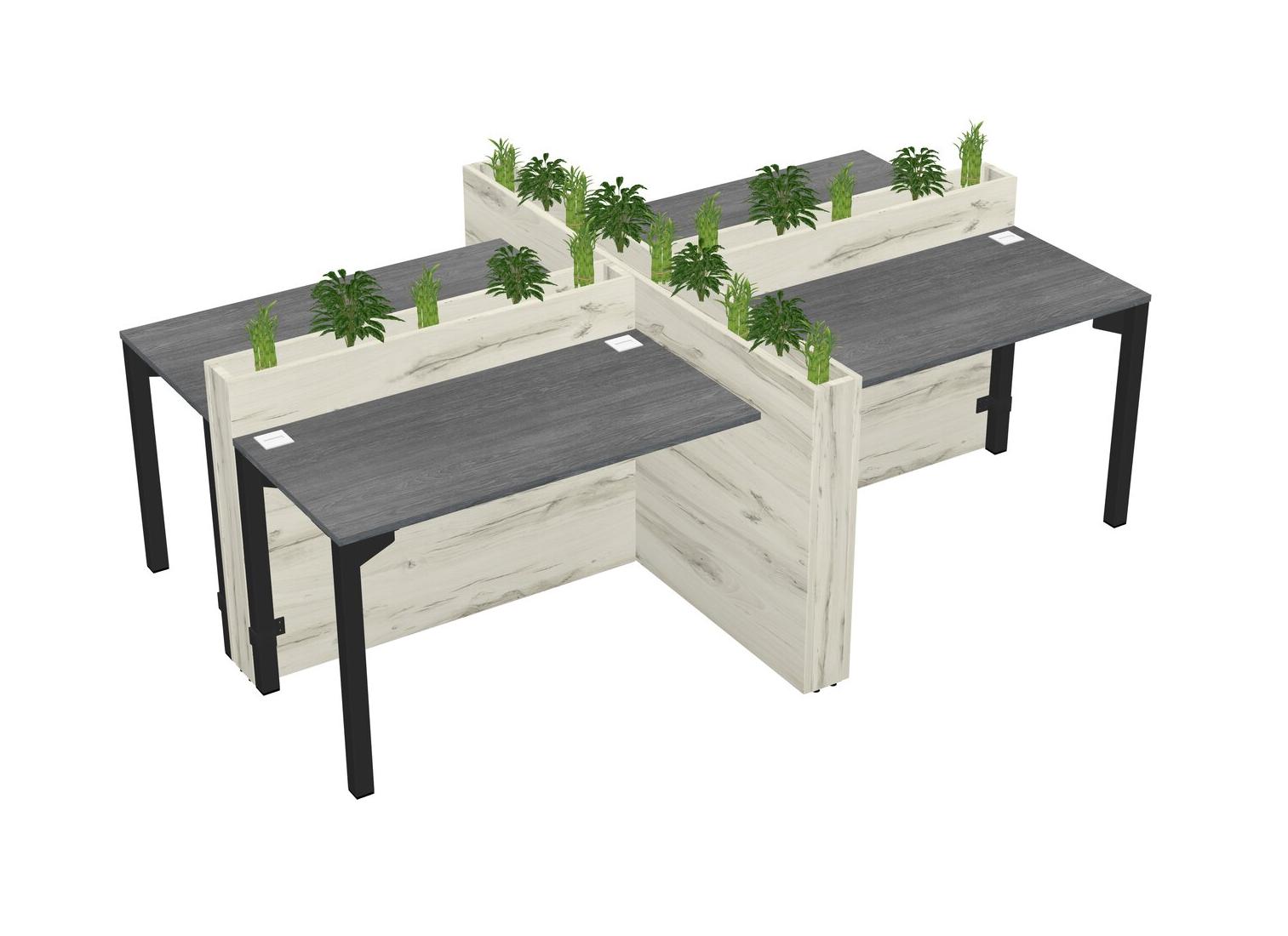 Grey Rectangular Shared Office Desk For 4 Persons Let Nature Help Flourish Your Productivity The Base Comes With An Adjustable Shelf To Provide Space For Pots (Pots & Plants Sold Separately)