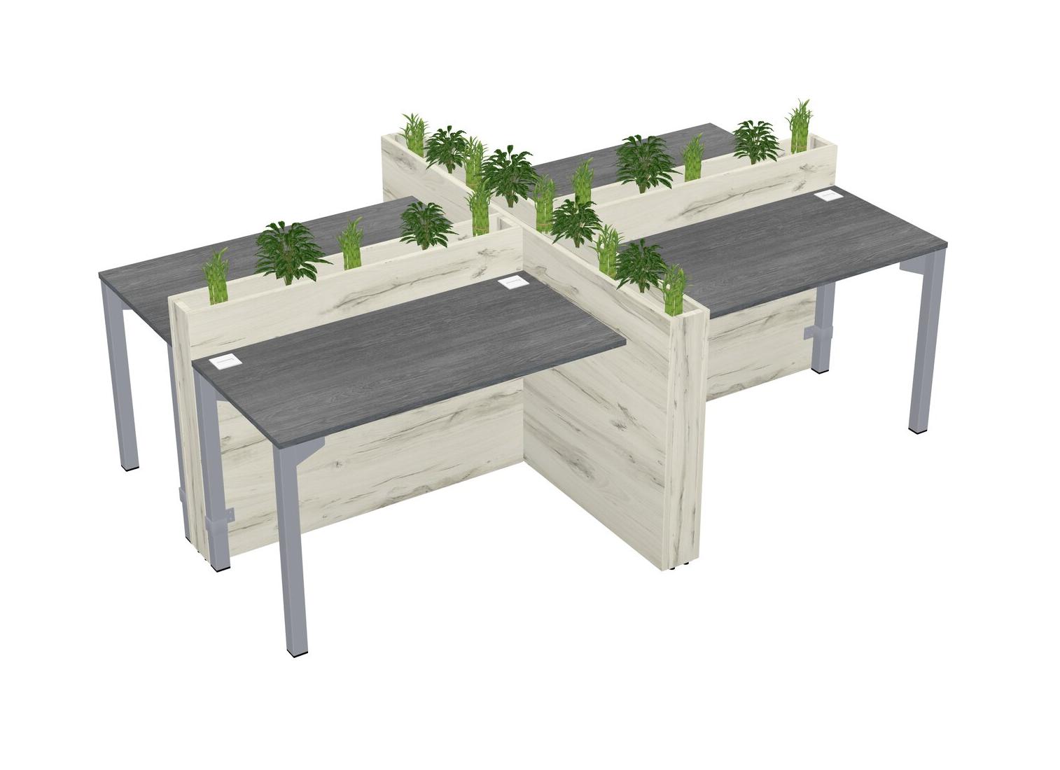 Grey Rectangular Shared Office Desk For 4 Persons Let Nature Help Flourish Your Productivity The Base Comes With An Adjustable Shelf To Provide Space For Pots (Pots & Plants Sold Separately)