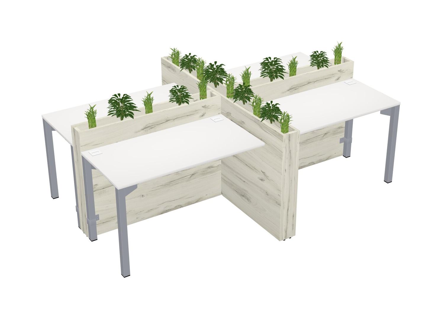 White Rectangular Shared Office Desk For 4 Persons Let Nature Help Flourish Your Productivity The Base Comes With An Adjustable Shelf To Provide Space For Pots (Pots & Plants Sold Separately)