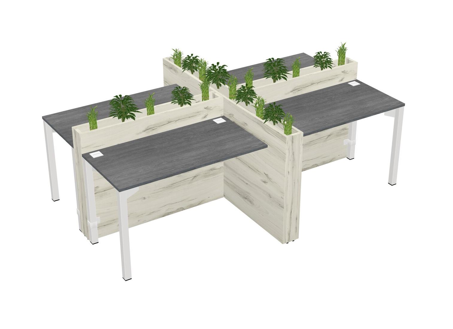 Grey Rectangular Shared Office Desk For 4 Persons Let Nature Help Flourish Your Productivity The Base Comes With An Adjustable Shelf To Provide Space For Pots (Pots & Plants Sold Separately)